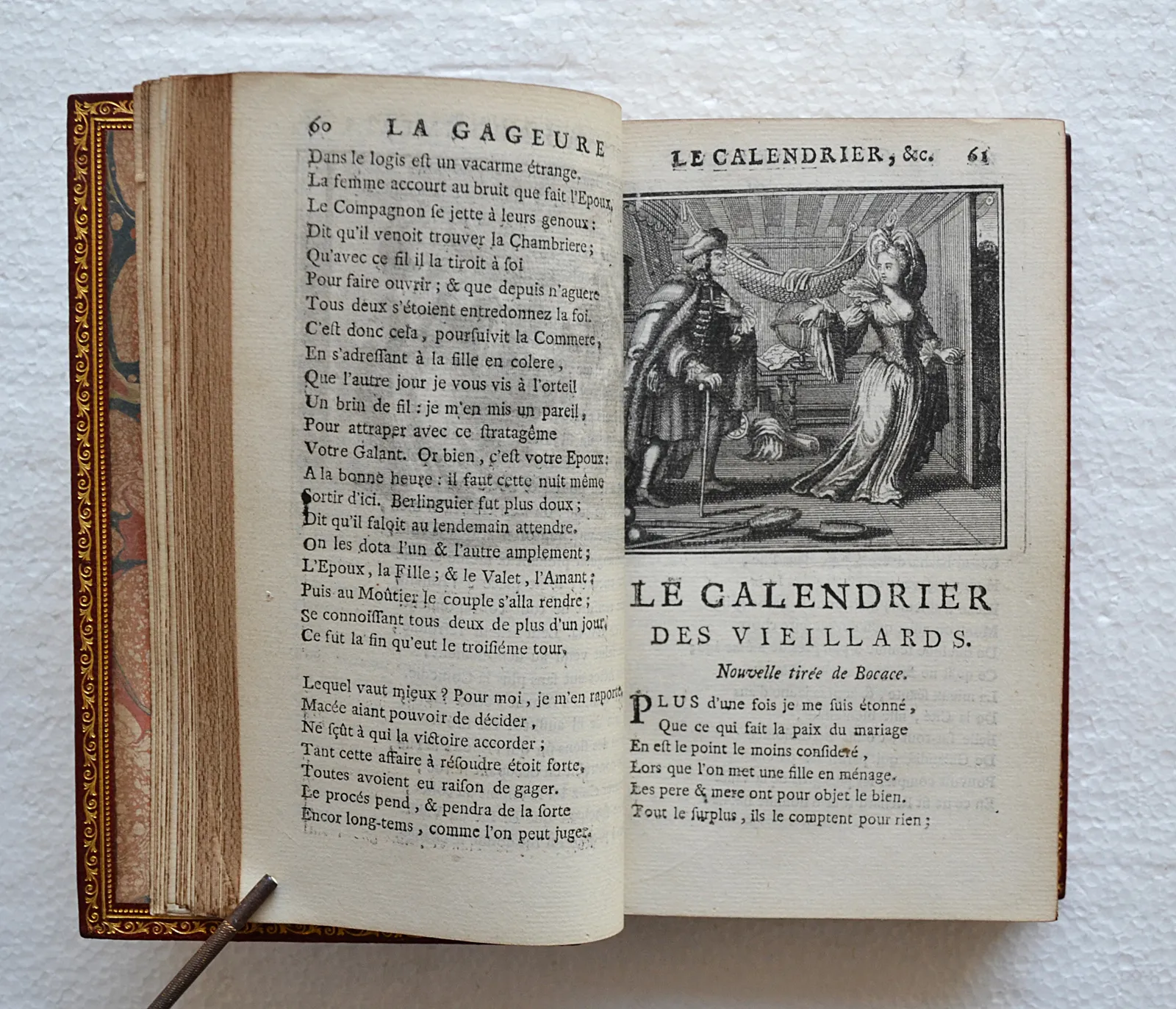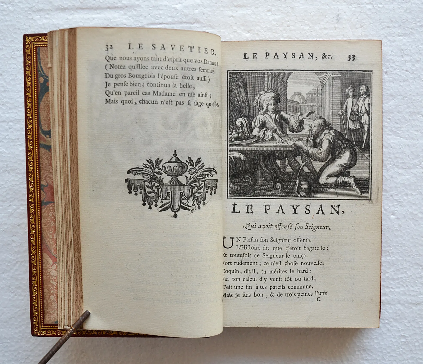 « Ces illustrations bien connues avaient paru pour la première fois dans la jolie édition d’Amsterdam, 1685, fort recherchée des bibliophiles et que beaucoup d’amateurs, malgré sa date, ajoutent avec raison aux éditions du XVIII° siècle » (Cohen – 556).