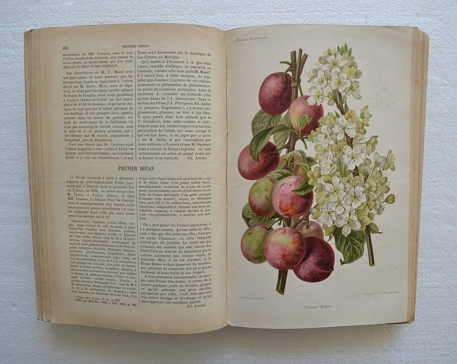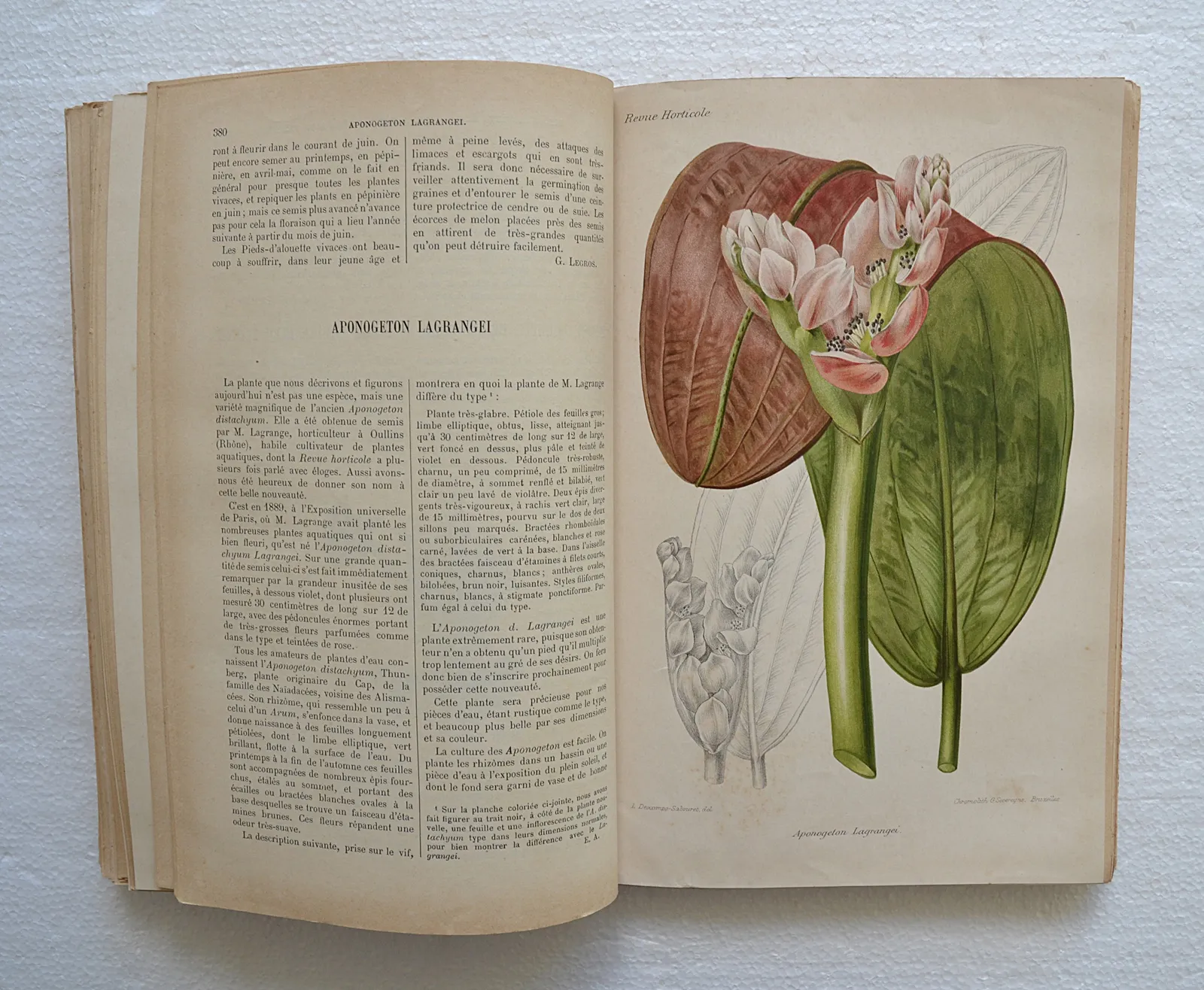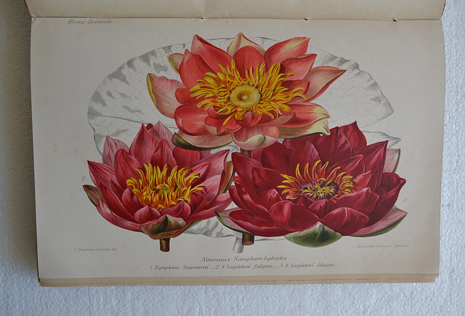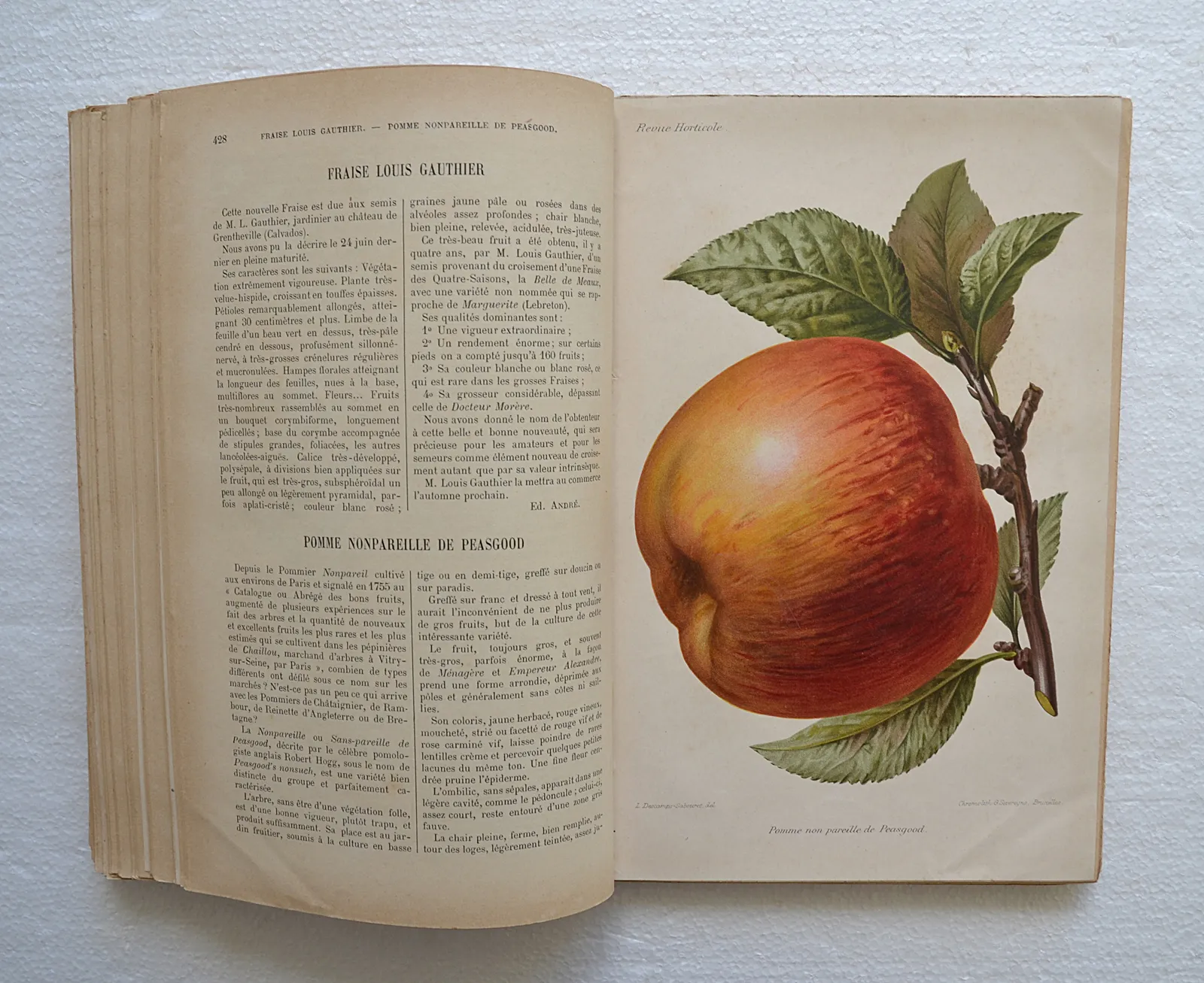 Bon exemplaire de cette célèbre revue horticole du XIX° siècle, illustrée de 24 magnifiques chromolithographies hors-texte, dessinées par Descamps-Sabouret et F. Bruno, et de nombreux dessins en noir dans le texte.