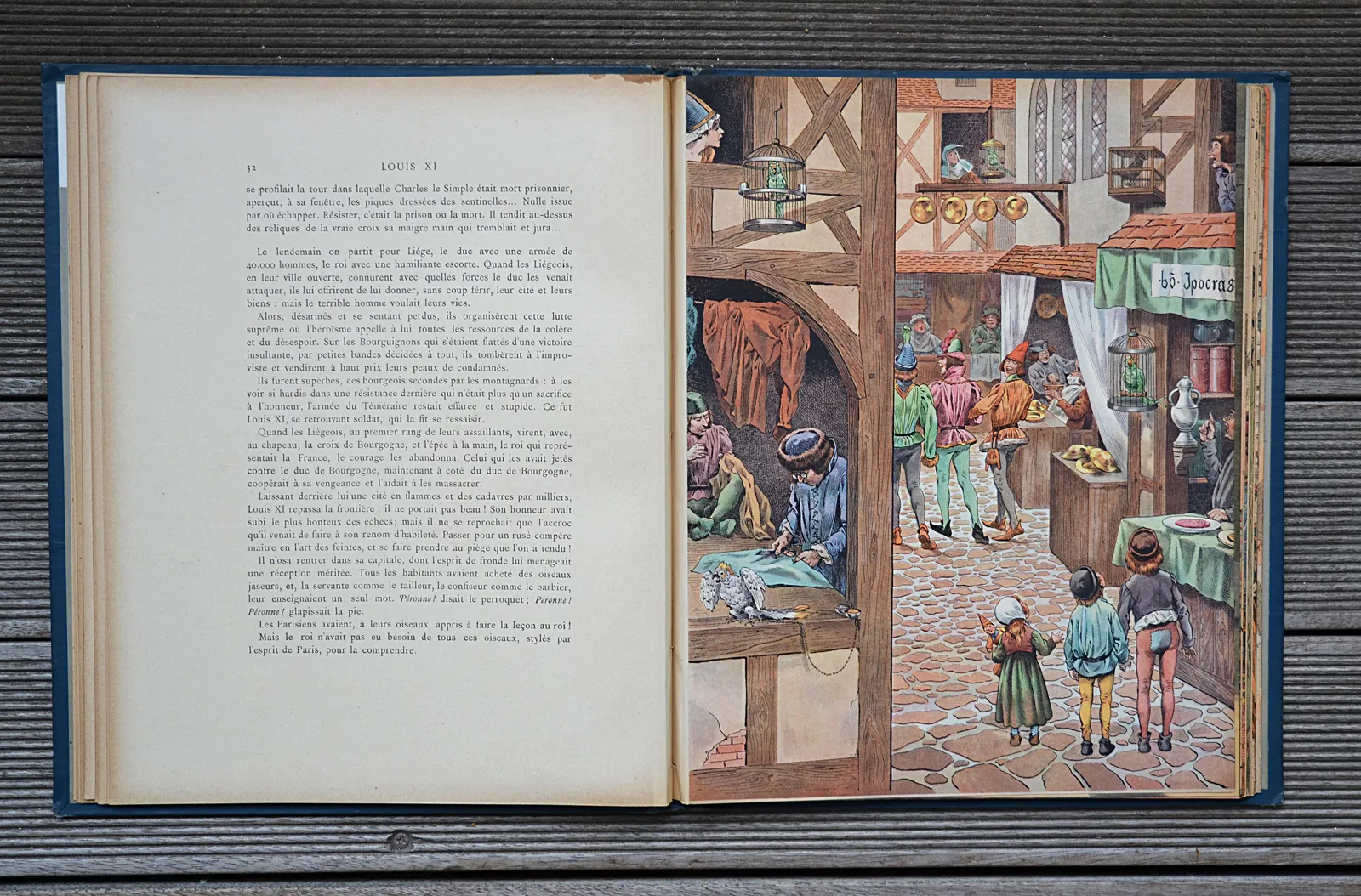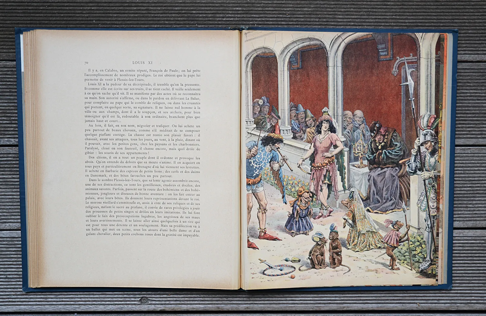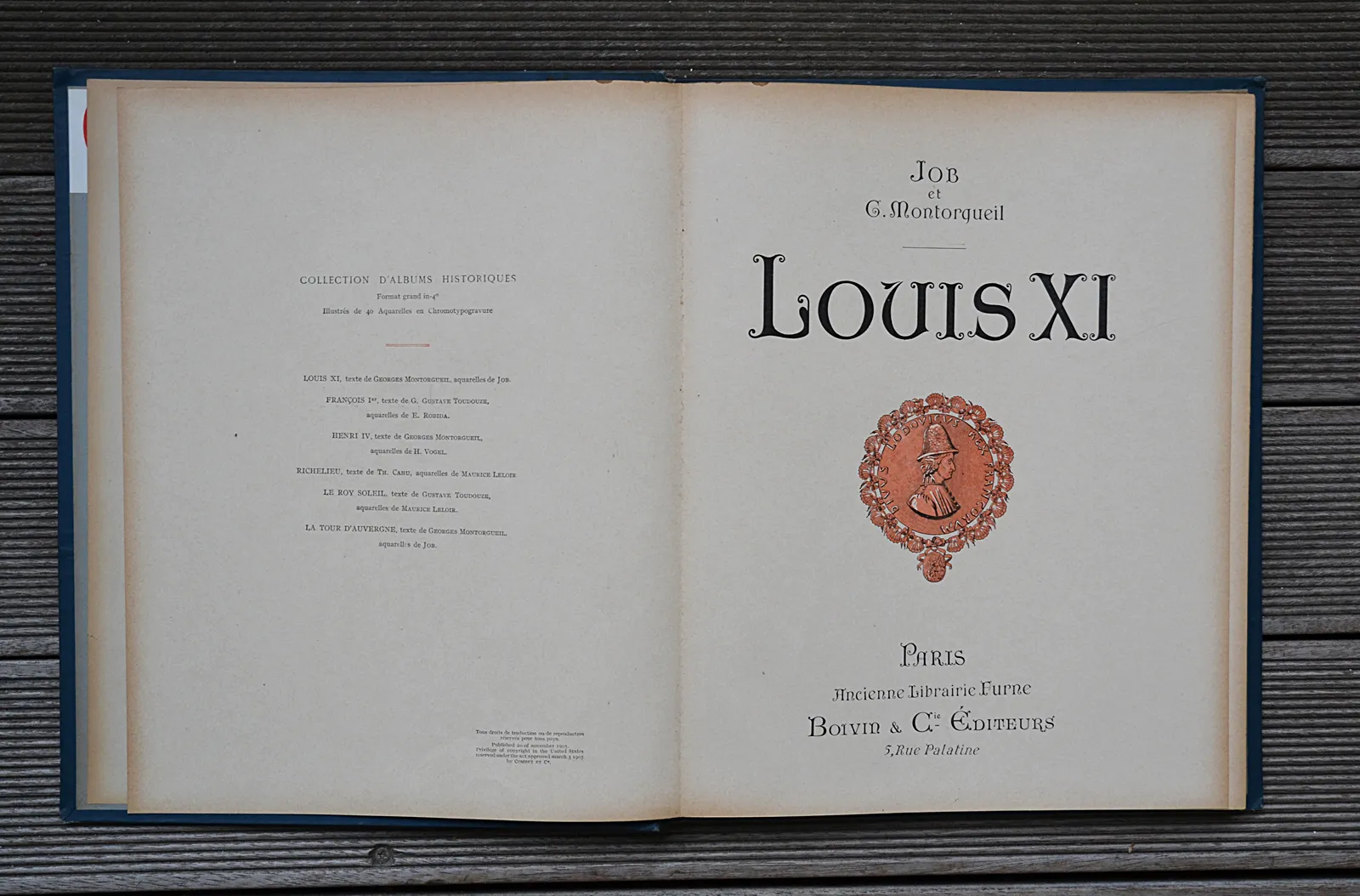 1905, in-folio, cartonnage bleu-nuit de l’éditeur orné de fleurs de lys dorées et d’un portrait de Louis XI, Bel exemplaire, 79 pages.