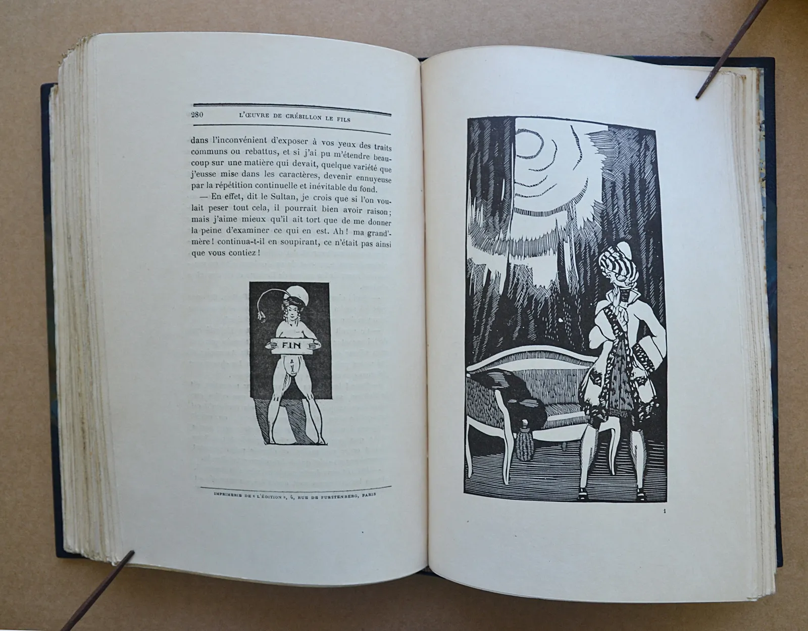 Paris, G. Briffaut, Éditeur, 1924. Un volume grand in-8 (17 x 25,5 cm.) de : XVI – 280 pages ; demi-maroquin bleu-nuit à coins, filet doré sur les plats, dos lisse orné de fers rocailles en long, date dorée en queue, tête dorée, couverture illustrée et dos conservés.