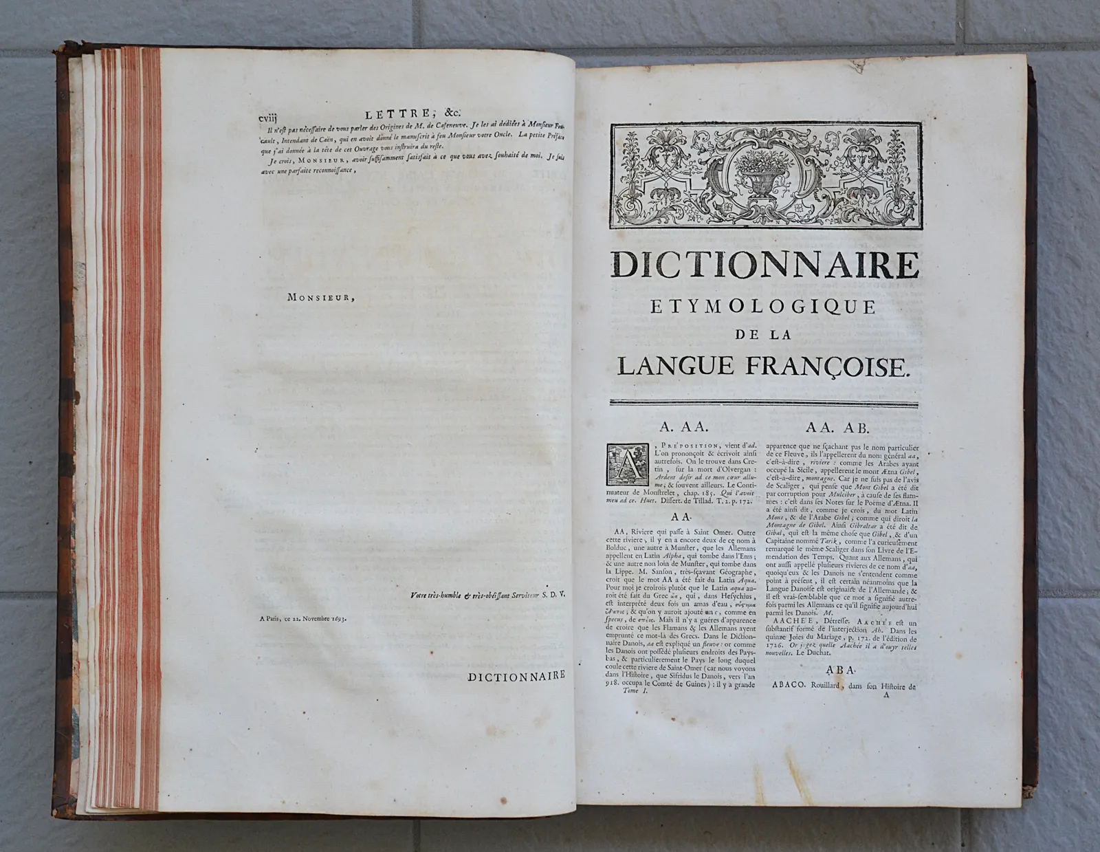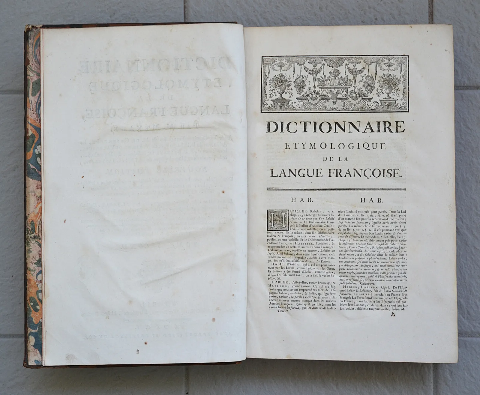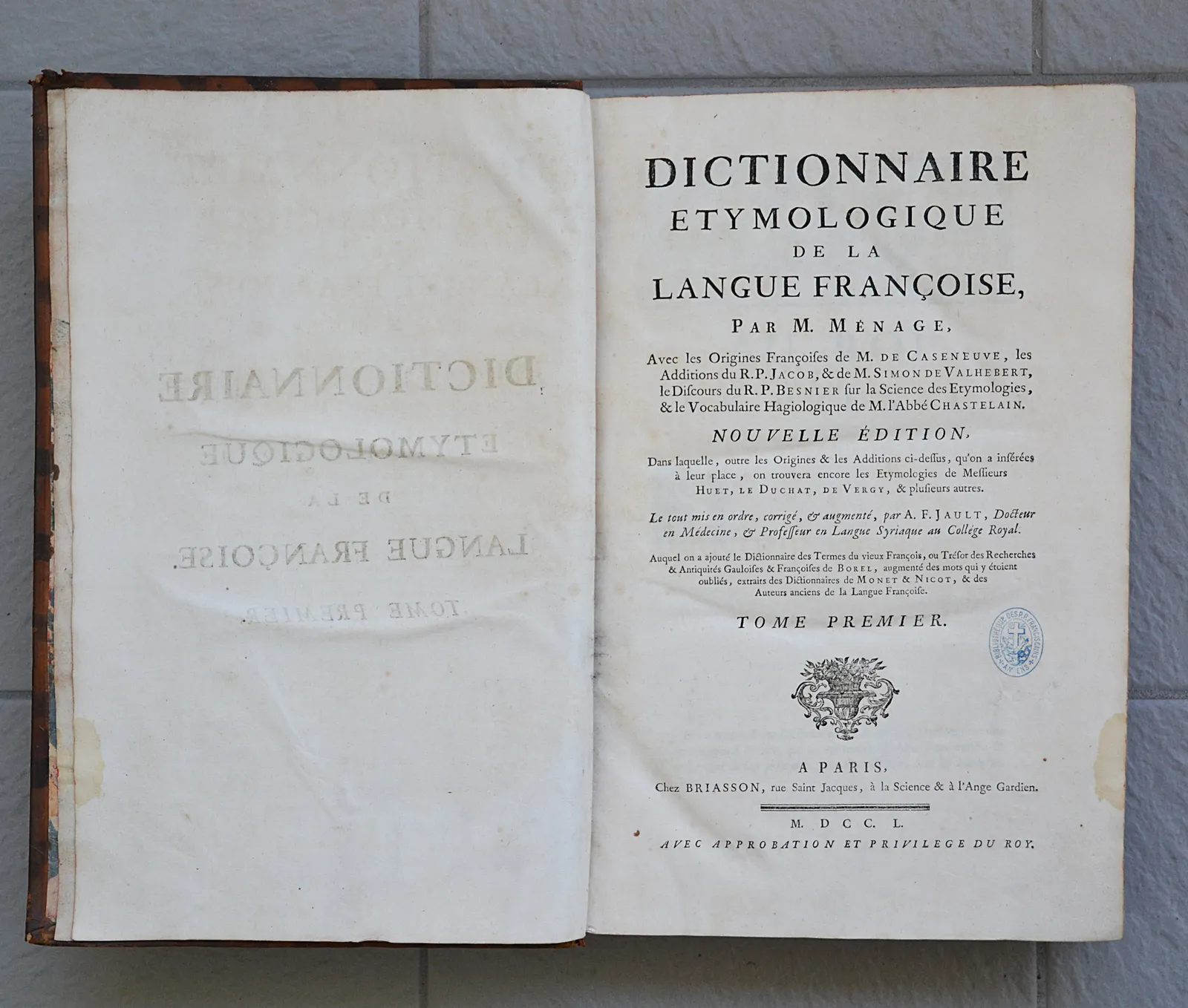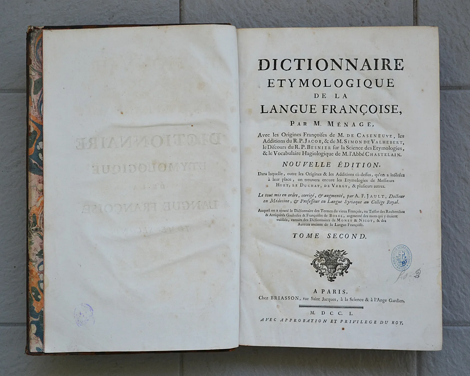 Nouvelle édition, dans outre les origines & les additions ci-dessus, qu’on a insérées à leur place, on trouvera encore les étymologies de Messieurs Huet, Le Duchat, de Vergy, & plusieurs autres (…) Auquel on a ajouté le dictionnaire des termes du vieux François, ou Trésor des Recherches & Antiquités Gauloise & Françoises de Borel, augmenté des mots qui y étaient oubliés, extraits des Dictionnaires de Monet & Nicot, & des auteurs anciens de la langue Françoise.