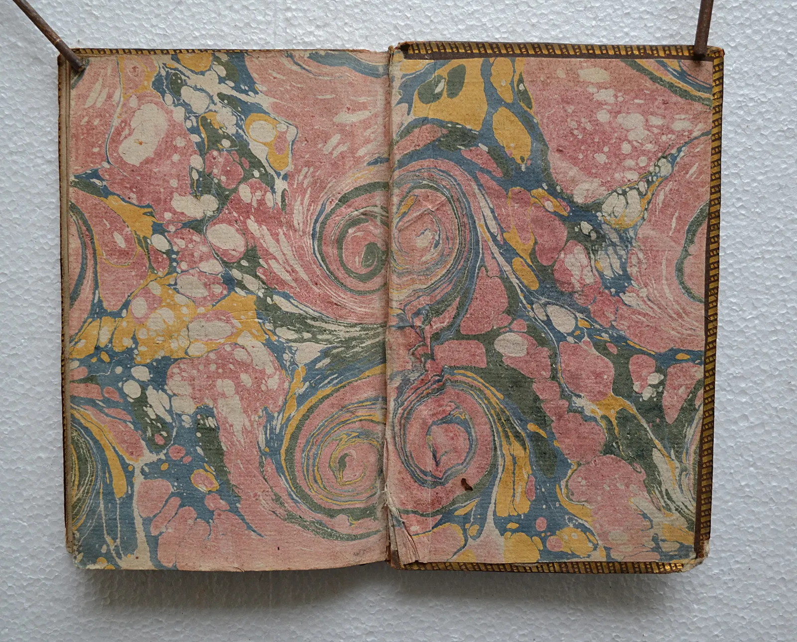 Quelques accrocs, notamment sur les coiffes & les coins ; épidermures ; deux mors fendillés ; salissures au verso de la première contregarde (cf. photo).