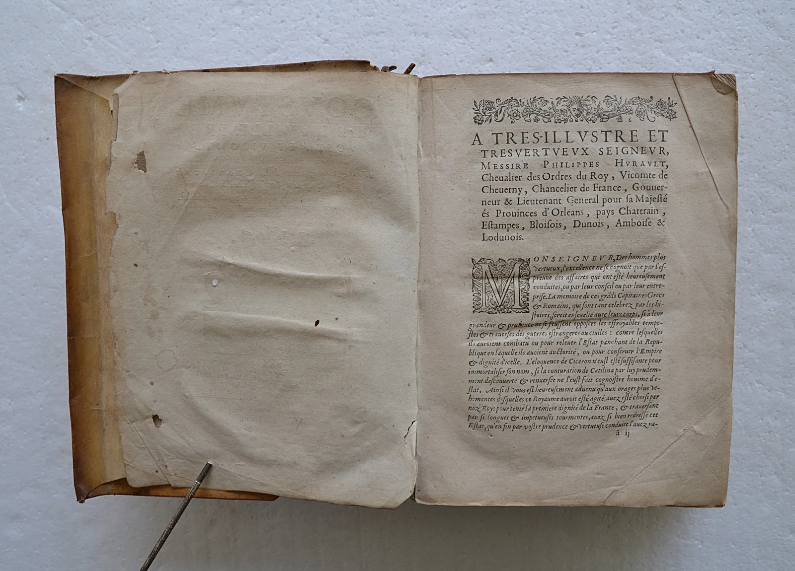 Cassures des coutures des charnières intérieures au niveau des contreplats, cf. photos ; un mors fendu ; le dernier feuillet de Table est collé sur le contreplat ; il manque 2 feuillets dans l’Avant-propos (a4 & e4).Bon exemplaire de cette rare seconde édition, dans son vélin d’origine.
