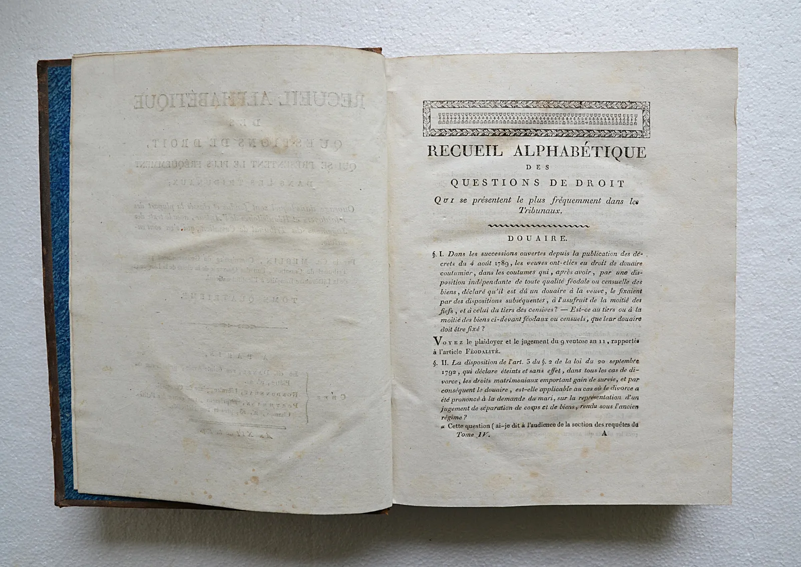 Ouvrage dans lequel sont fondus et classés la plupart des plaidoyers et réquisitoires de l’auteur, avec le texte des jugements du tribunal de cassation, qui s’en sont en suivis.
