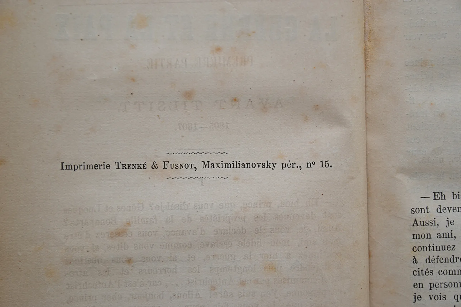 [Saint-Pétersbourg], Imprimerie Trenké & Fusnov, Maximilianovsky, pér., n°15 [Distribué à Paris par la Librairie Hachette], 1879.