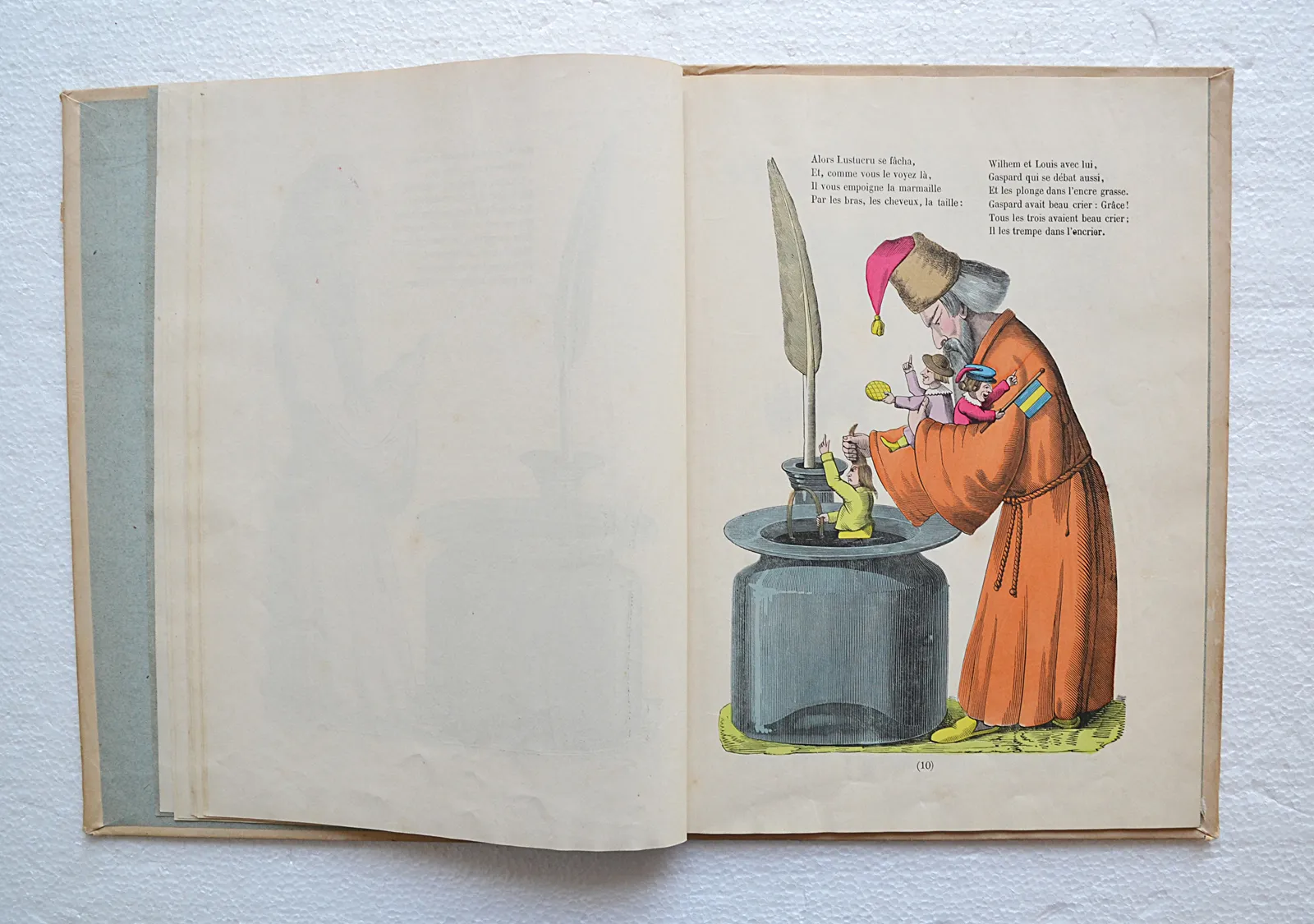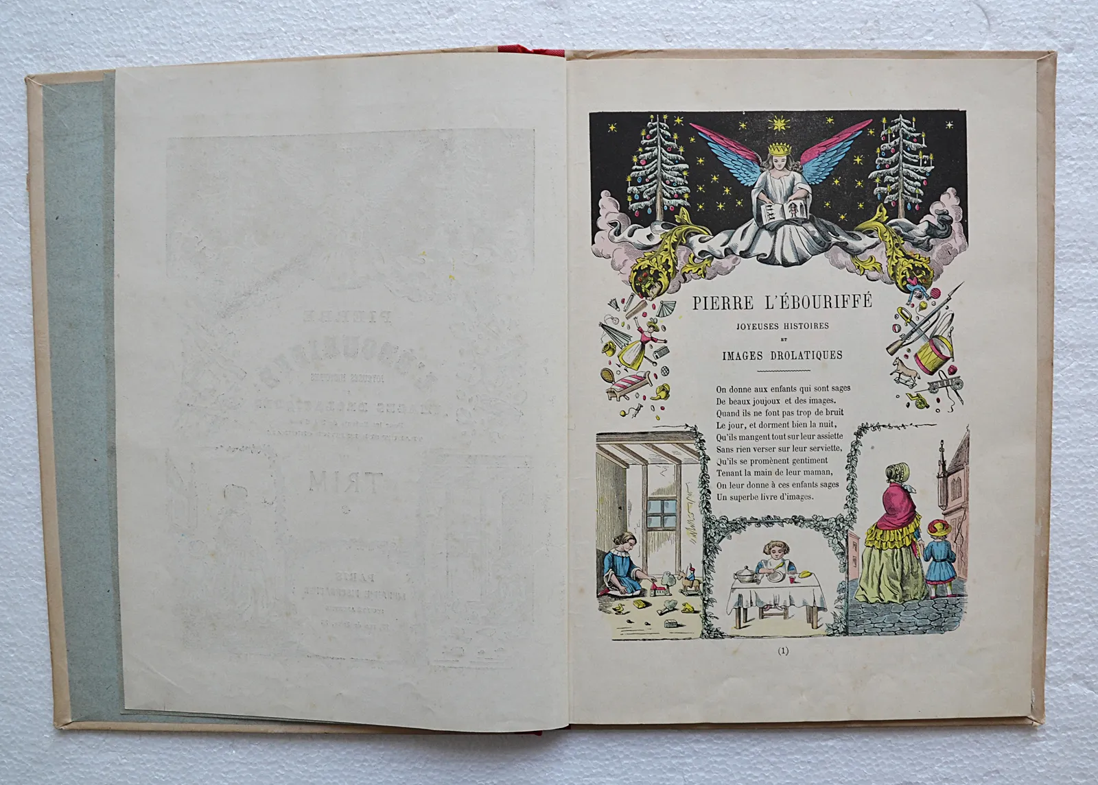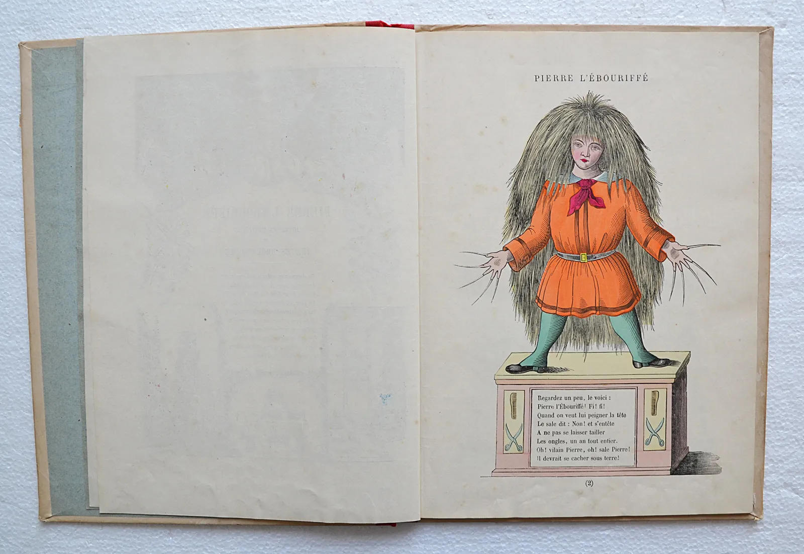 « Pierre l’ébouriffé », est un livre allemand d’histoires courtes en vers, publiée en 1844, dont l’auteur Heinrich Hoffmann (1809-1894) est un psychiatre et un écrivain, également auteur de livres pour enfants. Sous forme humoristique, il s’agit d’un vrai recueil de leçons de morale pour enfants, sur ce qu’il ne faut pas faire, allant de mal se tenir à table à se moquer des étrangers, en passant par faire mal aux bêtes, etc. Le livre a été traduit dans plusieurs langues. On peut le trouver chez de nombreux pédopsychiatres allemands.