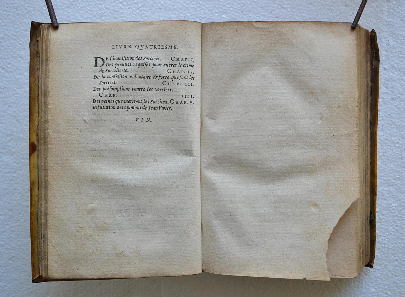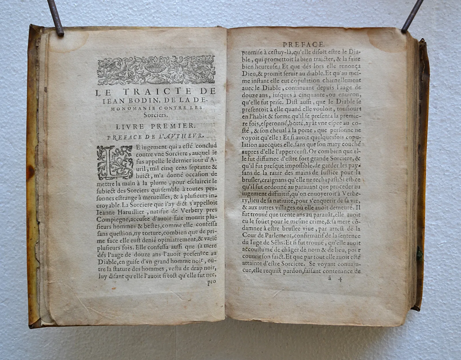 Œuvre du célèbre juriste Jean Bodin (1530-1596), De la démonomanie des sorciers, publiée en 1580 et mise à l’index le 1er septembre 1594, deviendra rapidement le manuel de référence des juges siégeant aux procès de sorcellerie. A l’aube de la plus intense période de persécution en France, le juriste se propose de définir « le sorcier », d’élucider ses machinations clandestines, et de fournir un mode d’emploi visant à faciliter l’instruction des procès en sorcellerie, depuis les dénonciations et les interrogatoires jusqu’au bûcher.