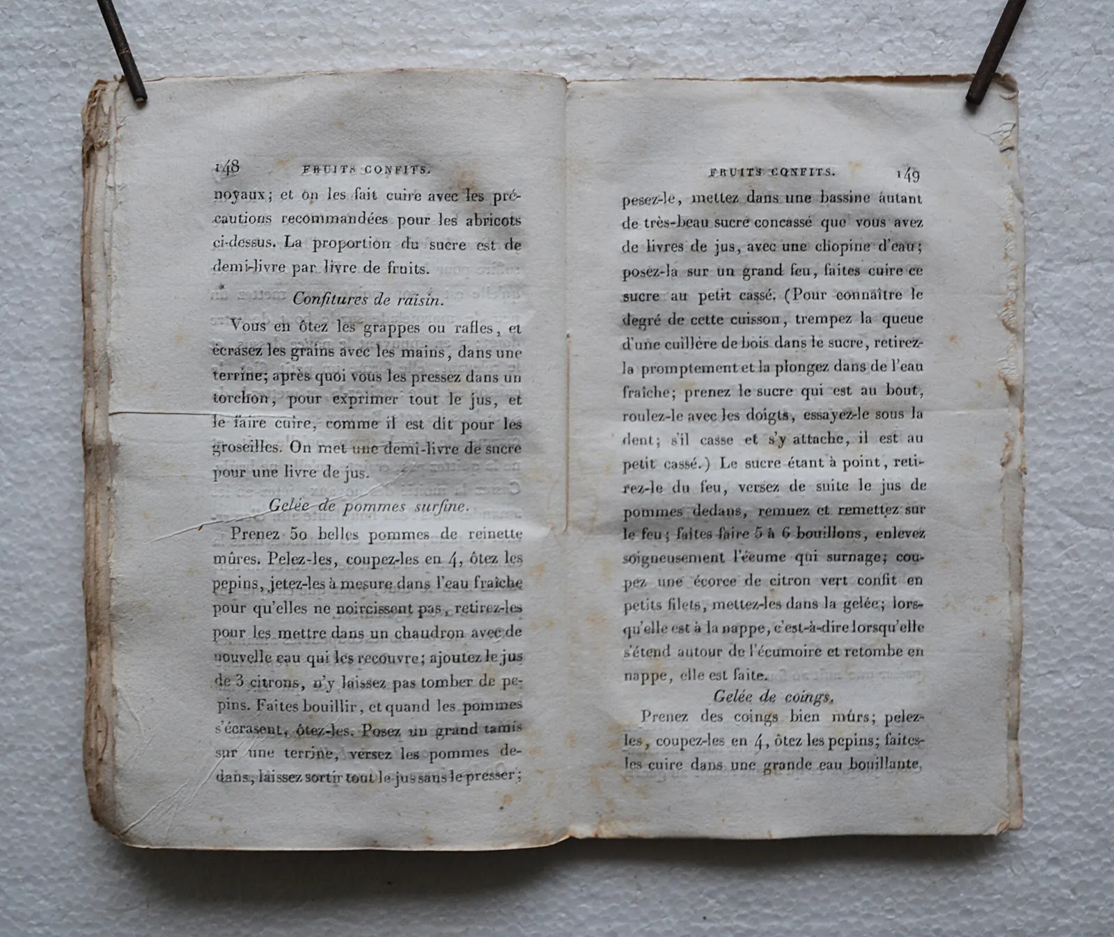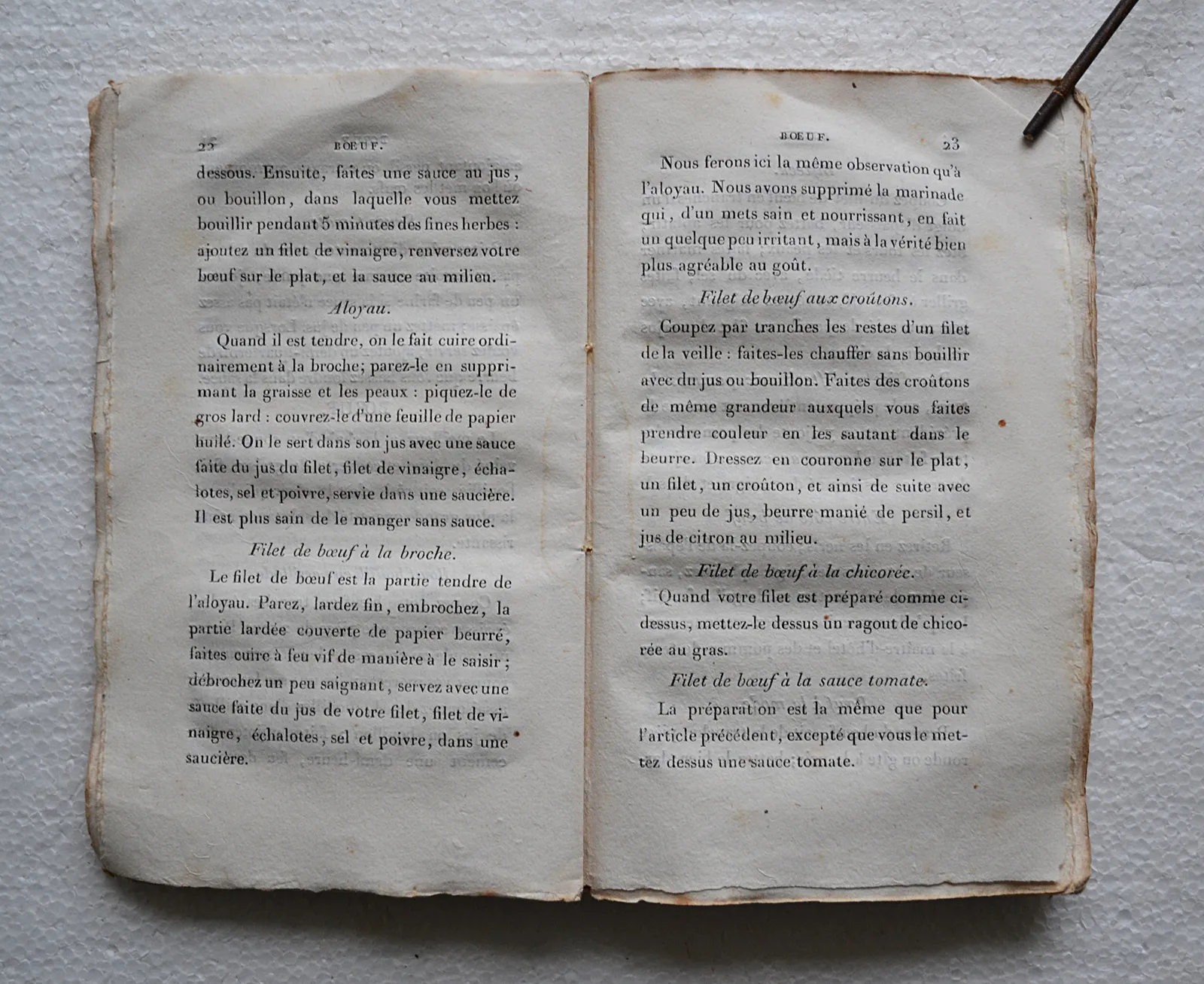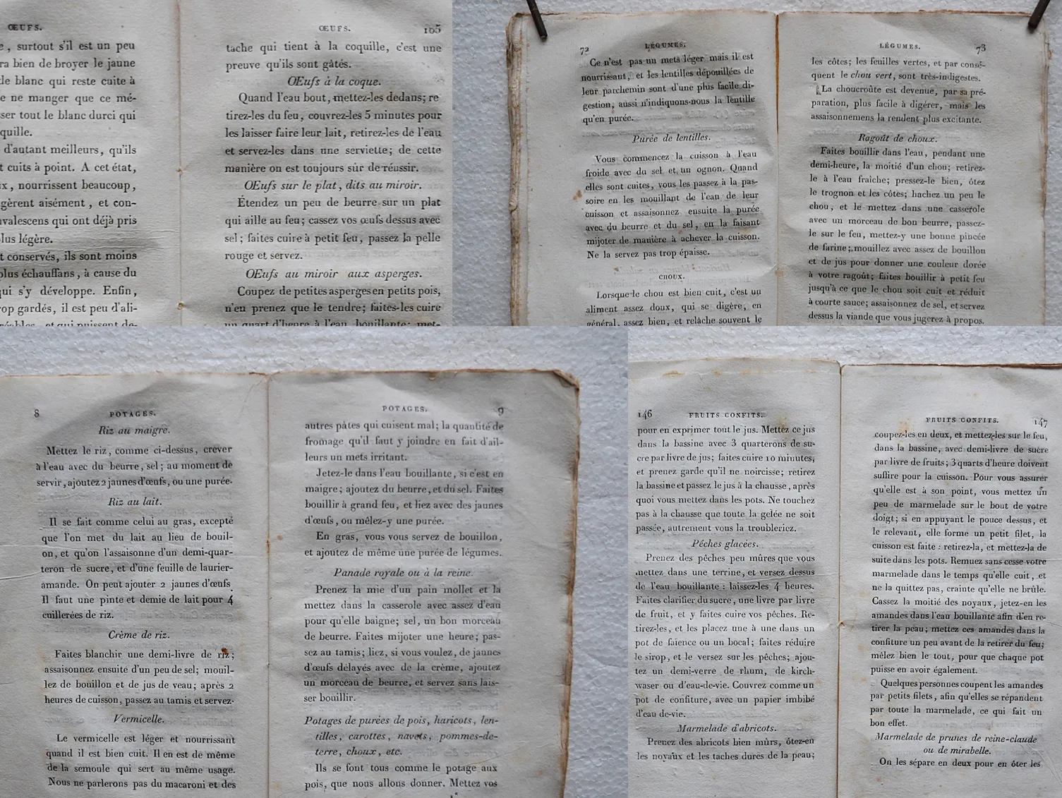« Ce livre, dira-t-on, est bien mince : il est facile d’en donner la raison ; on a supprimé de la cuisine ordinaire tous les mets échauffans, ceux où entrent les assaisonnemens irritans, tels que le poivre et autres épices, etc., les mets de difficile digestion ; ainsi, on n’y trouve pas de cochon, de poissons, dont la chaire soit lourde ; la pâtisserie se trouve réduite aux biscuits, et cependant il se trouve encore plus de 300 recettes ; n’est-ce pas assez pour varier les mets et satisfaire suffisamment le goût de toute personne sage ? » (Préface).