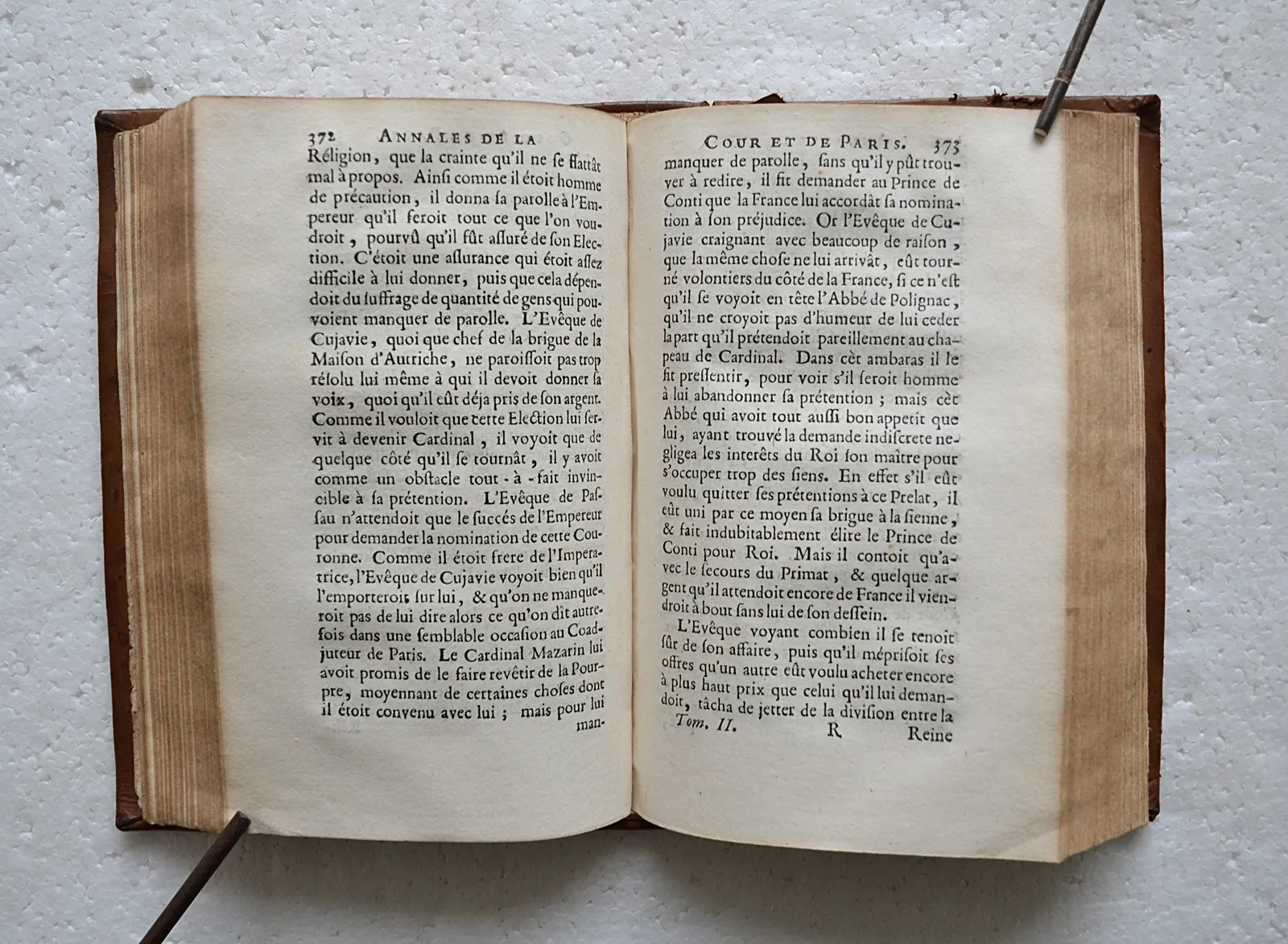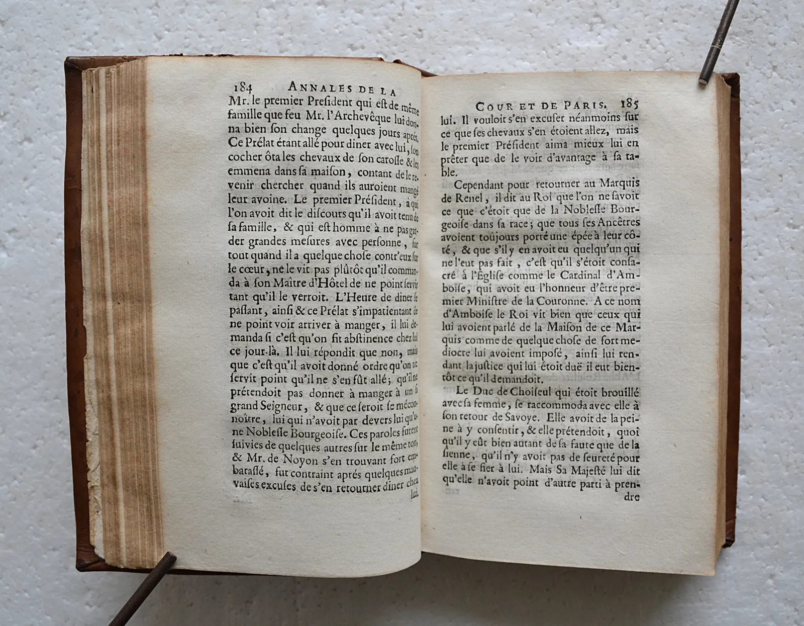 1697, in-12, veau fauve moucheté, Bel exemplaire de cette chronique scandaleuse qui valut un embastillement à Courtilz de Sandras, 232 pages.