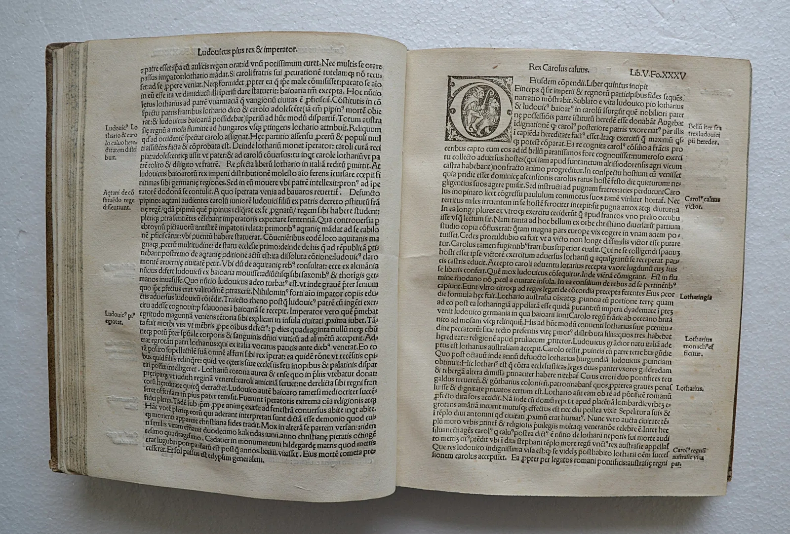Belles lettrines gravées, ornées de personnages et d’animaux.