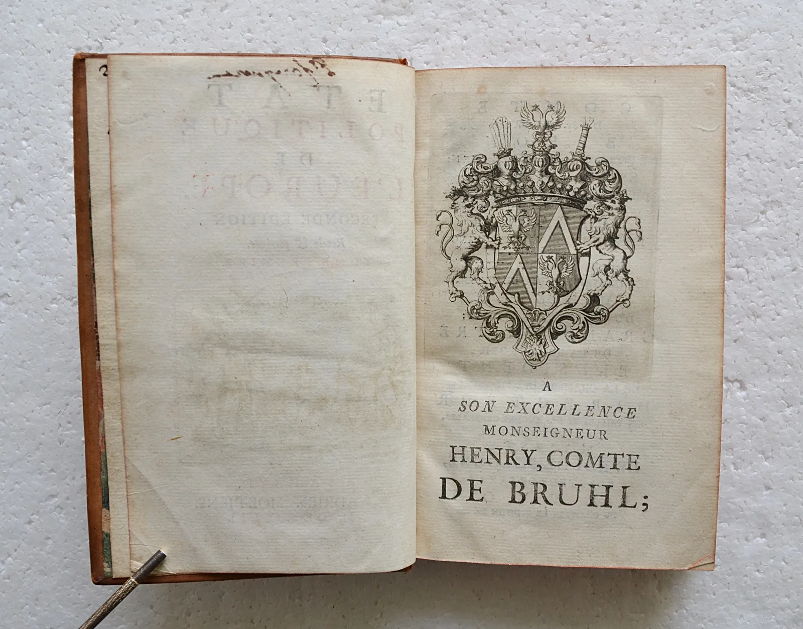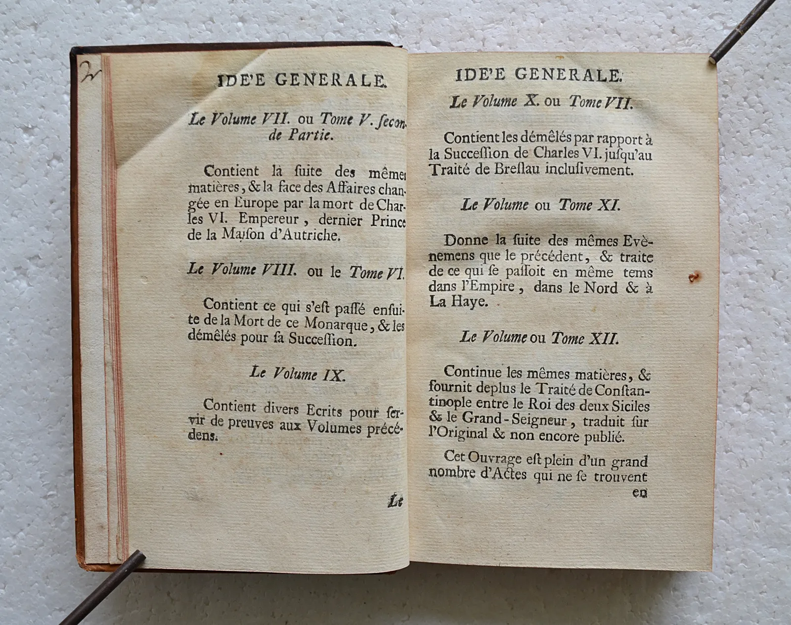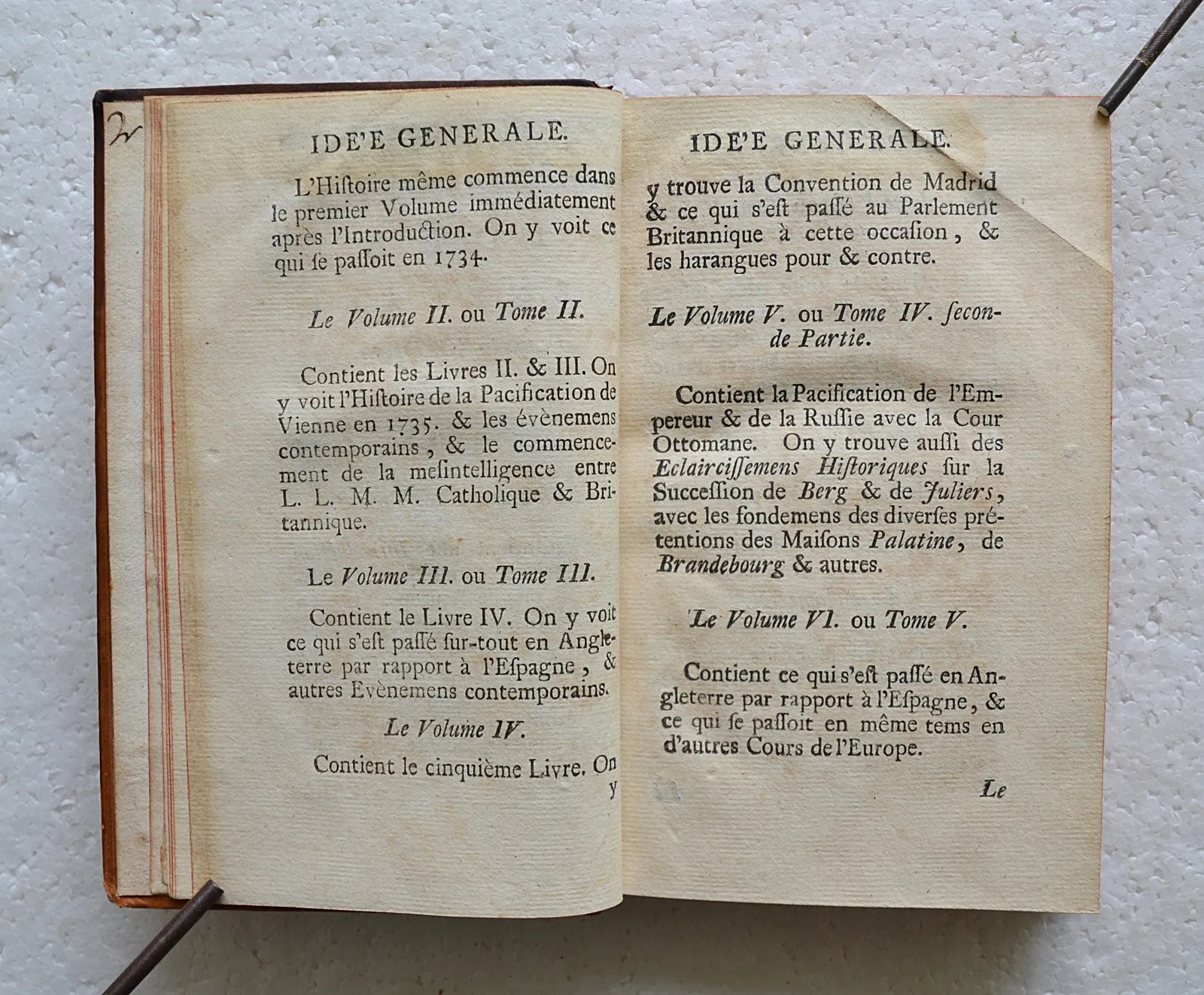 Cette rarissime revue historique est composée de documents divers sur les affaires diplomatiques et militaires des années 1735-1743, concernant notamment le traité de Vienne de 1738 entre l’Autriche et la France mettant fin entre ces deux pays à la guerre de succession de la Pologne, il comporte plusieurs dispositions dynastiques qui modifièrent la carte politique de l’Europe et assurèrent un nouvel équilibre entre les deux puissances. L’ouvrage traite également de la guerre de succession d’Autriche (1740-1748), d’un plan du traité de paix entre l’Angleterre et l’Espagne, ainsi que de la pacification de l’Empereur d’Autriche & de la Russie avec la cour ottomane.