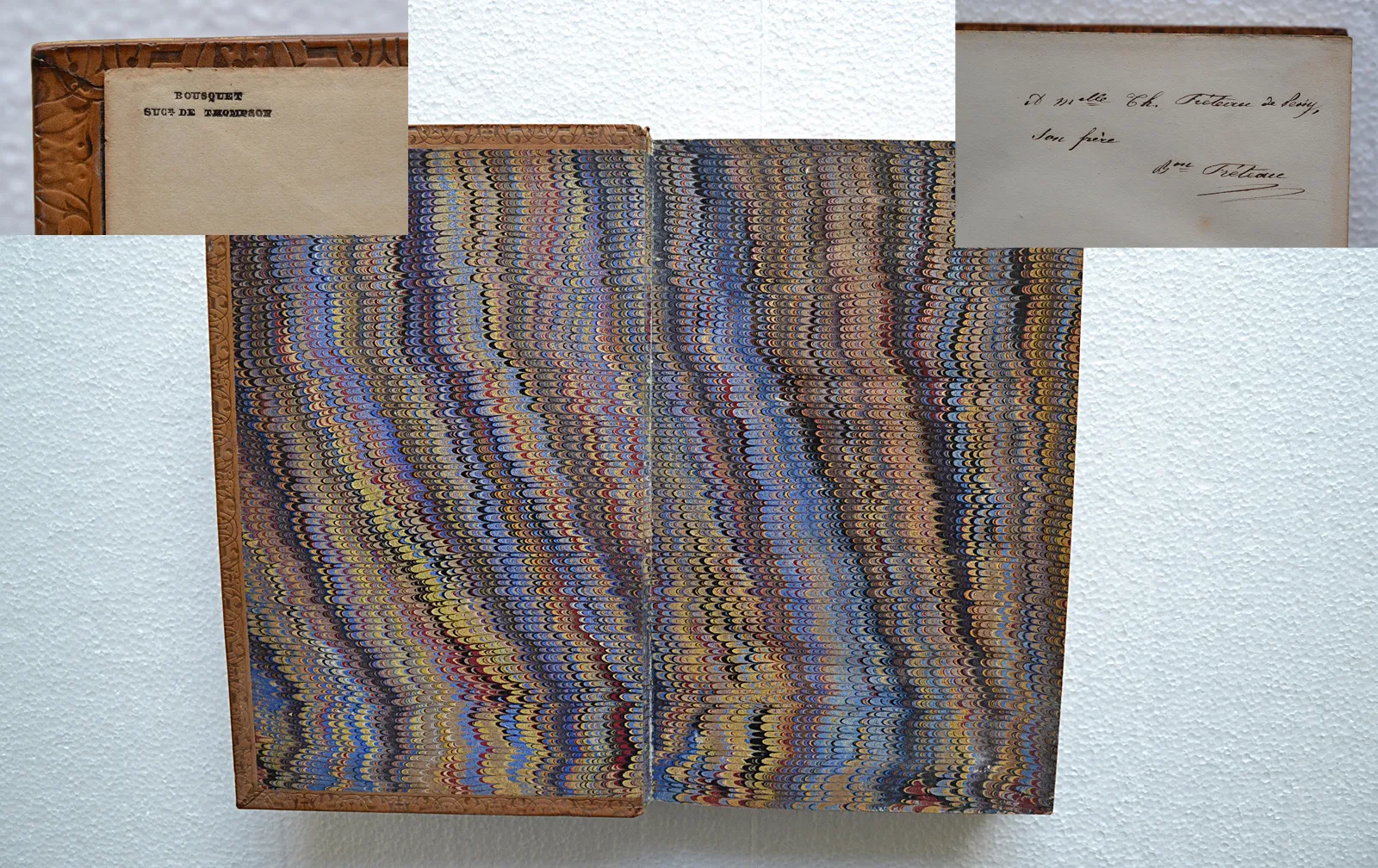 Très bel exemplaire dans une fine reliure signée Bousquet, aux armes d’Emmanuel Jean-Baptiste Fréteau du Pény (1775-1855), avocat à la cour de cassation, pair de France, fait baron de l’Empire en 1809.