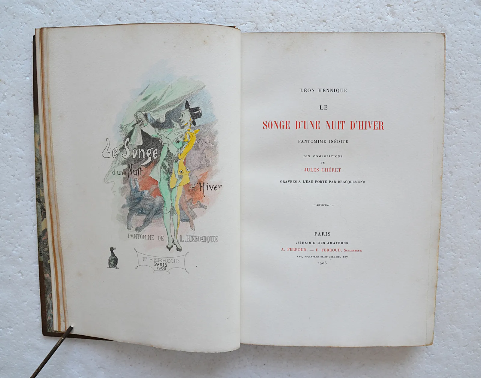 Bel exemplaire, dans une élégante reliure en maroquin signée, illustré d’un beau frontispice en couleurs (uniquement présent dans ce tirage), et de neuf compositions de Jules Chéret, maître incontesté de l’affiche moderne.