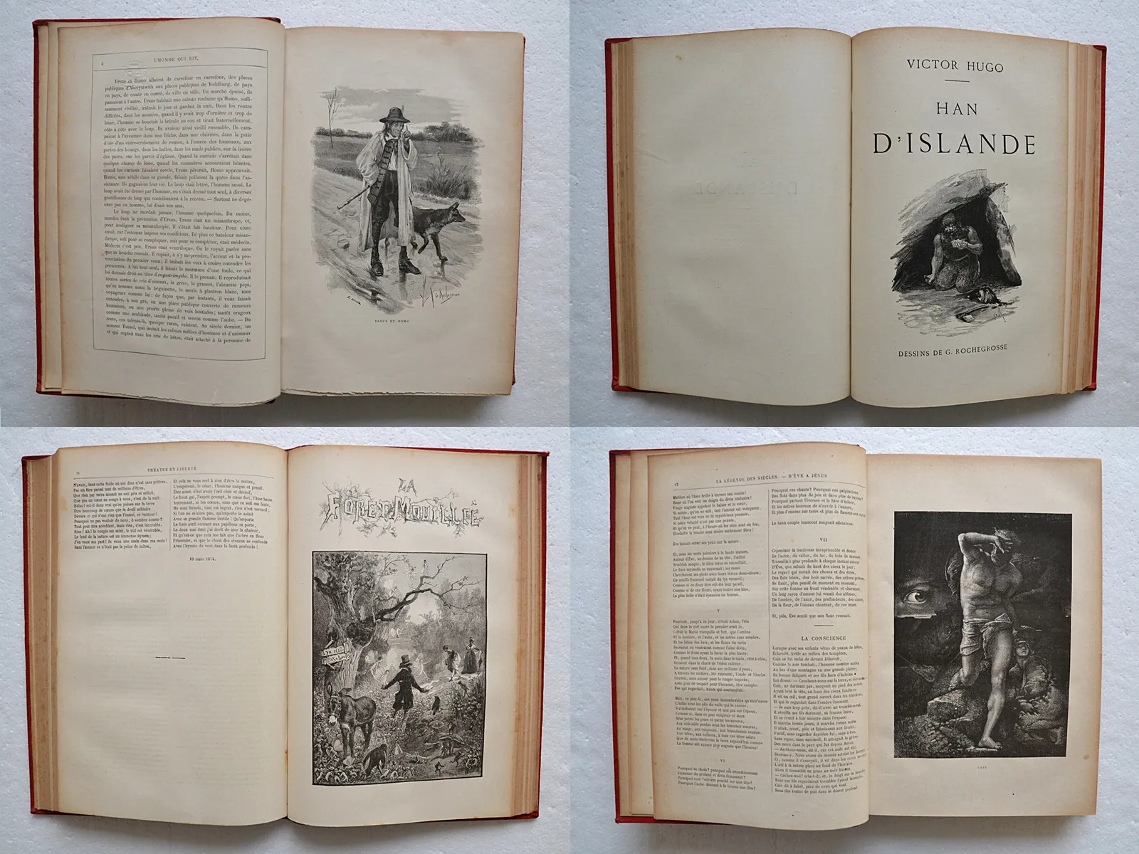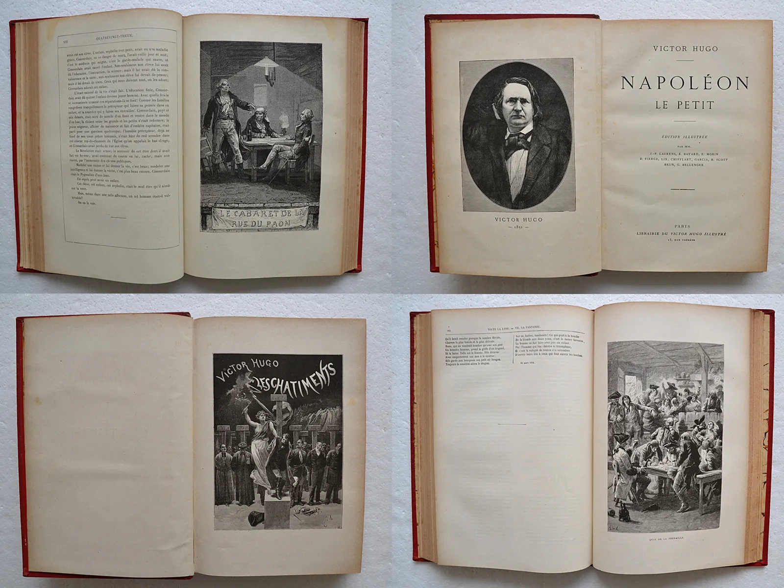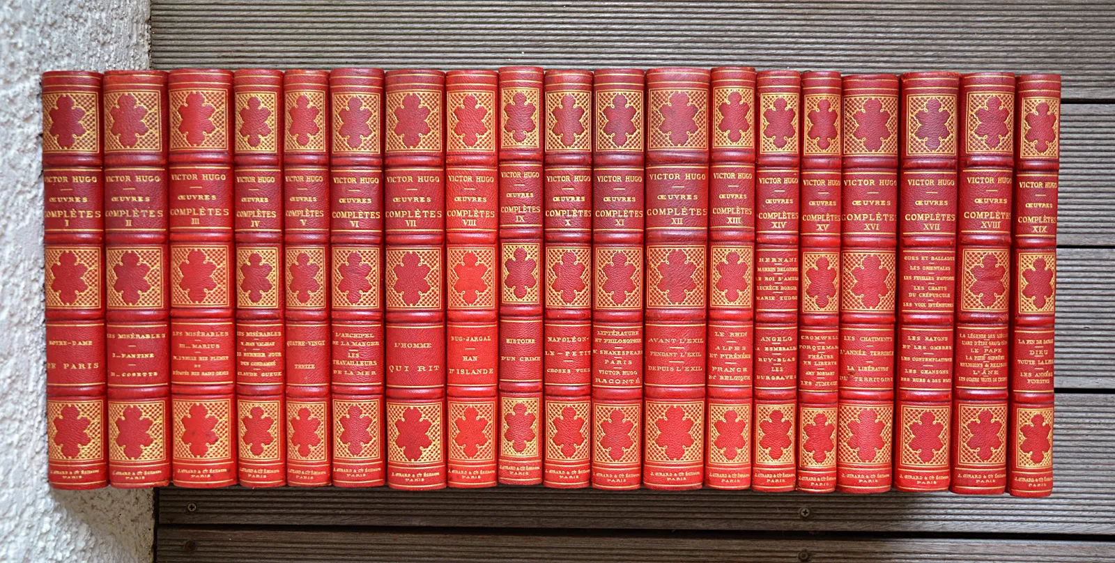 19 volumes in-4 (19 x 28 cm), demi-chagrin rouge, plats en percaline ornés de filets à froid, dos à nerfs ornés, nom de l’éditeur en lettres dorées en queue (reliure de l’édition).