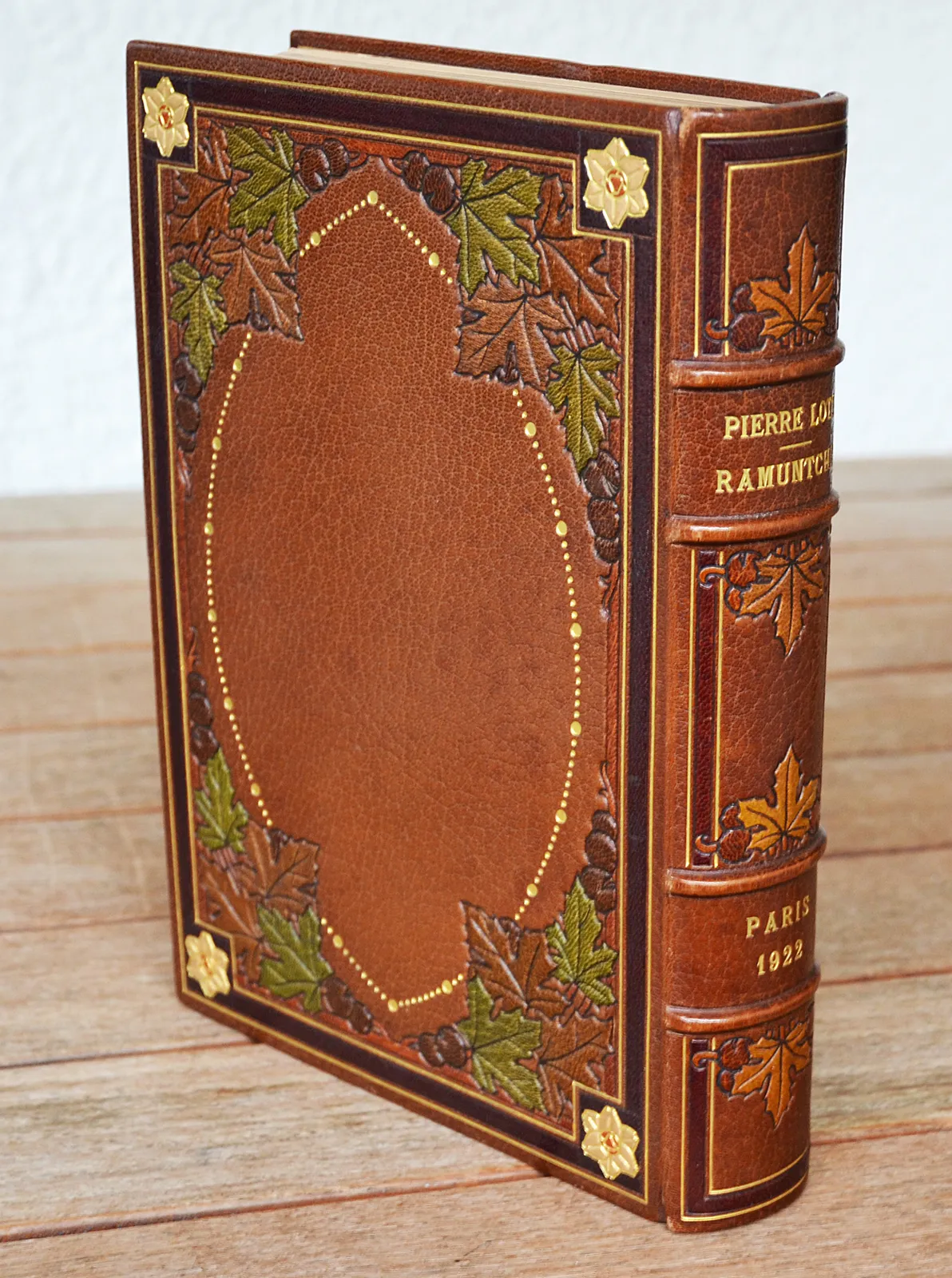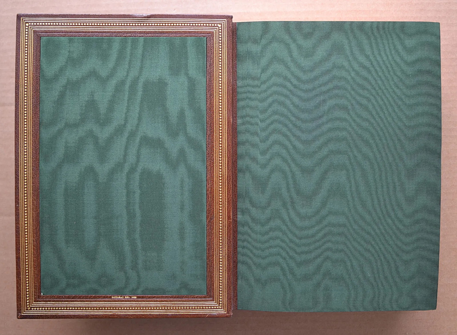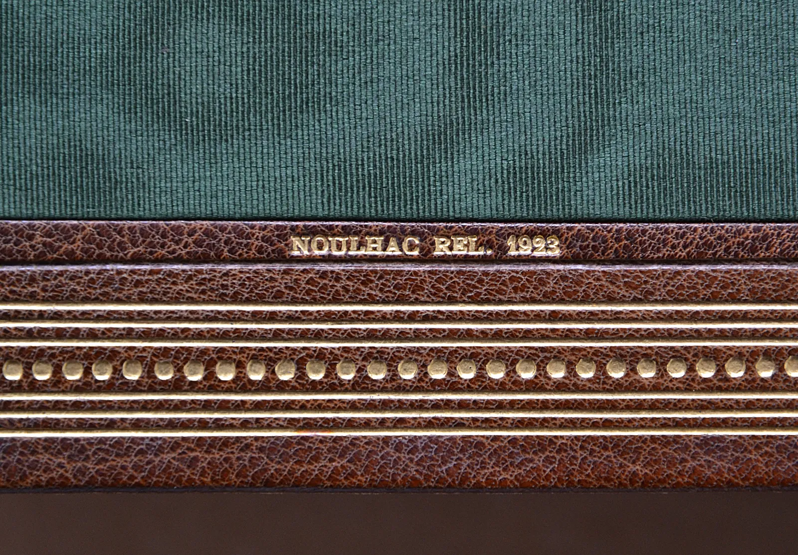 Quelques épidermures et décolorations, notamment sur plusieurs faux-nerfs ; quatre mors inférieurs fendillés.