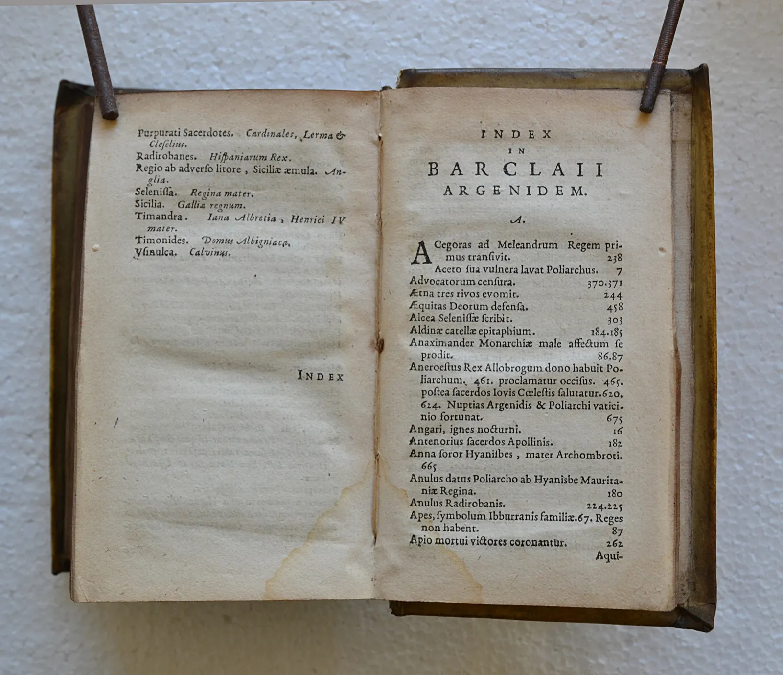 Jean Barclay (1582-1621) est un écrivain catholique français d’origine écossaise. Il est connu pour son Argenis, roman allégorique écrit en latin et mêlé de prose et de vers où il trace le tableau des vices et des révolutions des cours. Ce livre, estimé par Richelieu, est remarquable par l’élégance de style.