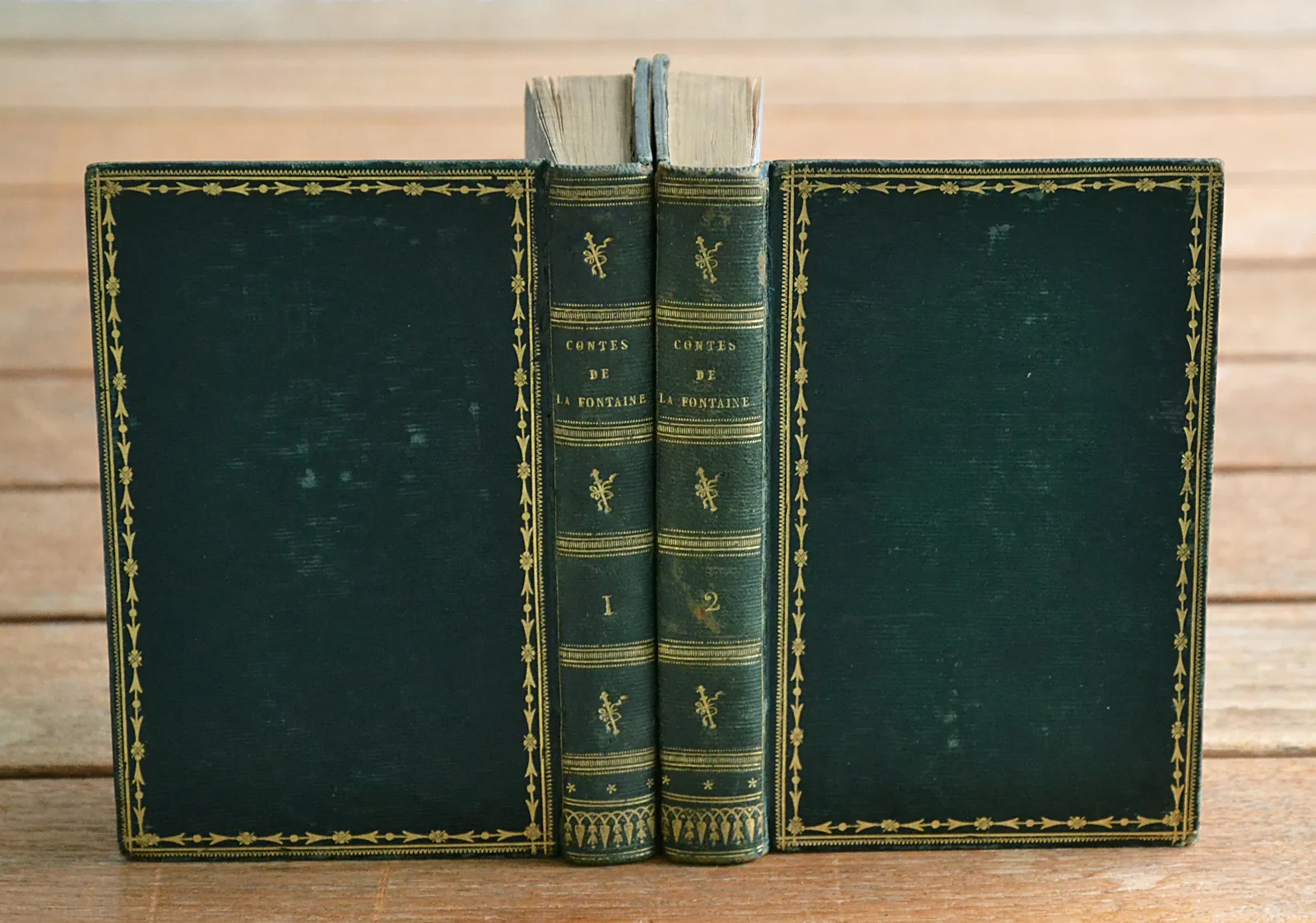 Deux volumes in-12 (10,5 x 16cm.) de (7ff.) – 240 pp. – (1f.) + (4ff.) – 285(1) pp. ; maroquin vert à grain long, encadrement de roulettes et filet dorés sur les plats, dos lisses ornés, roulettes dorées sur les coupes et à l’intérieur, tranches dorées (reliure du début du XIX° siècle).