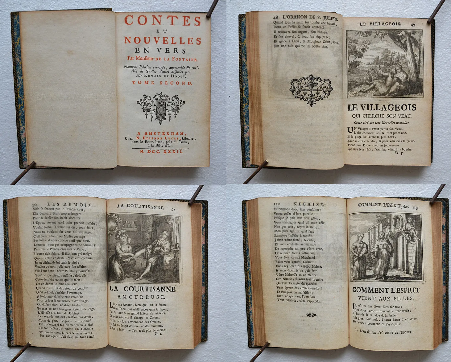 « Ces illustrations bien connues avaient paru pour la première fois dans la jolie édition d’Amsterdam, 1685, fort recherchée des bibliophiles et que beaucoup d’amateurs, malgré sa date, ajoutent avec raison aux éditions du XVIII° siècle » (Cohen – Guide de l’amateur de livres à gravures du XVIII° siècle).