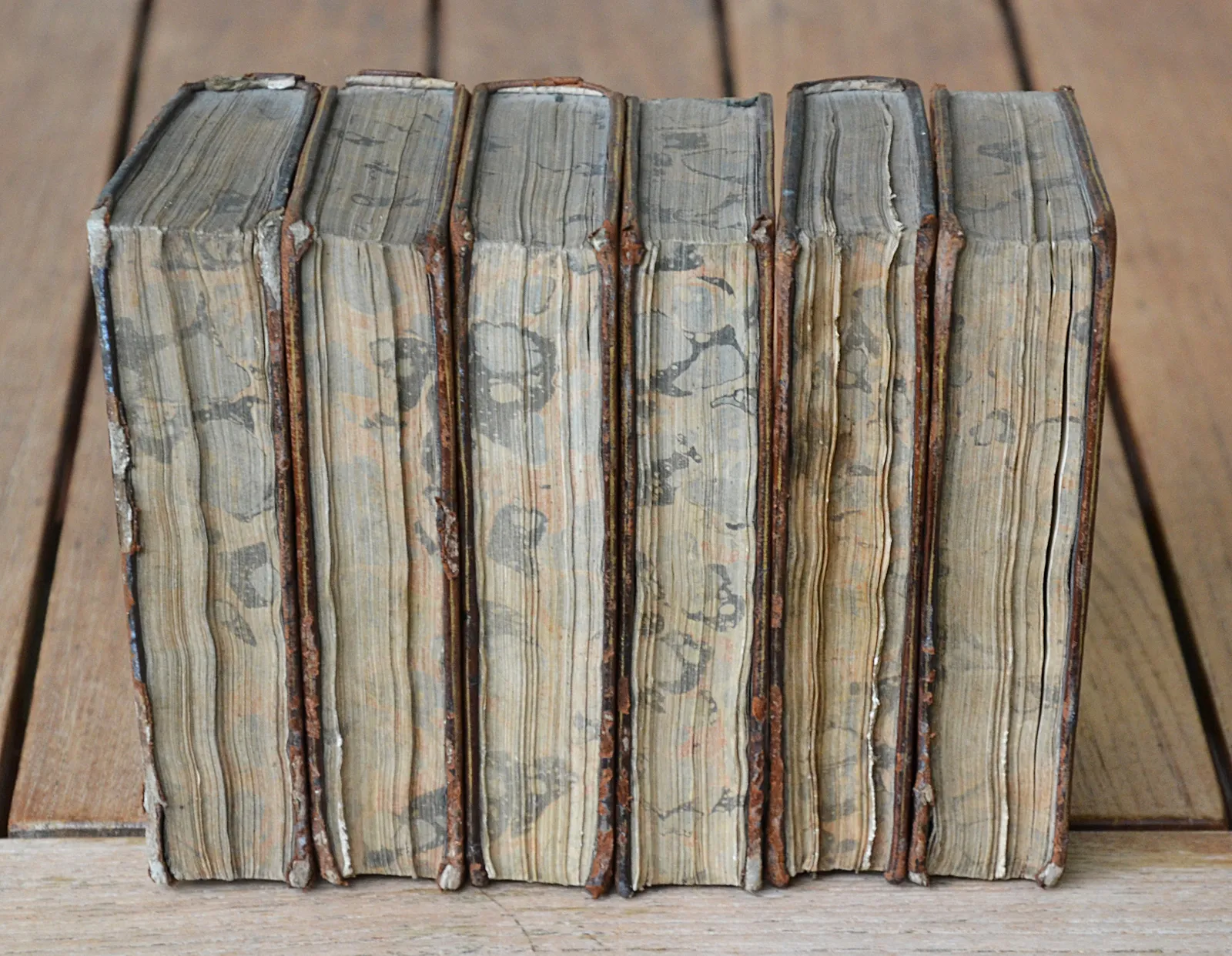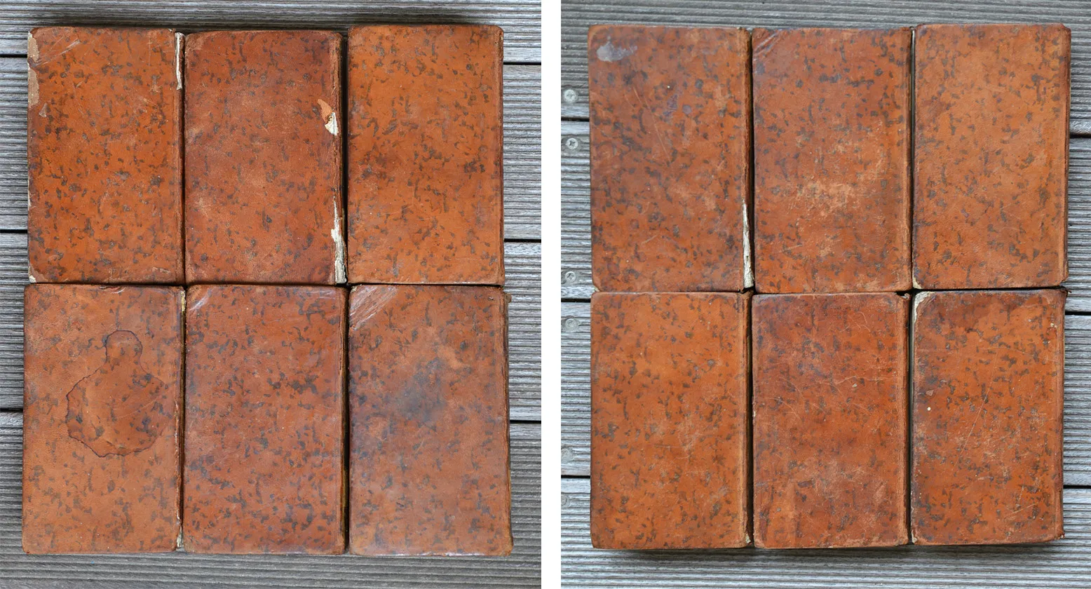 Six volumes in-12 (10 x 17 cm.) de : (2ff.) – XXVIII – (2ff.) – 440 pp. + (3ff.) – 432 pp. + (4ff.) – 442 pp. + (4ff.) – 532 pp. + (4ff.) – 494 pp. + (4ff.) – 501(2) pp. ; basane fauve marbrée, dos lisses ornés, tranches marbrées (reliure de l’époque).