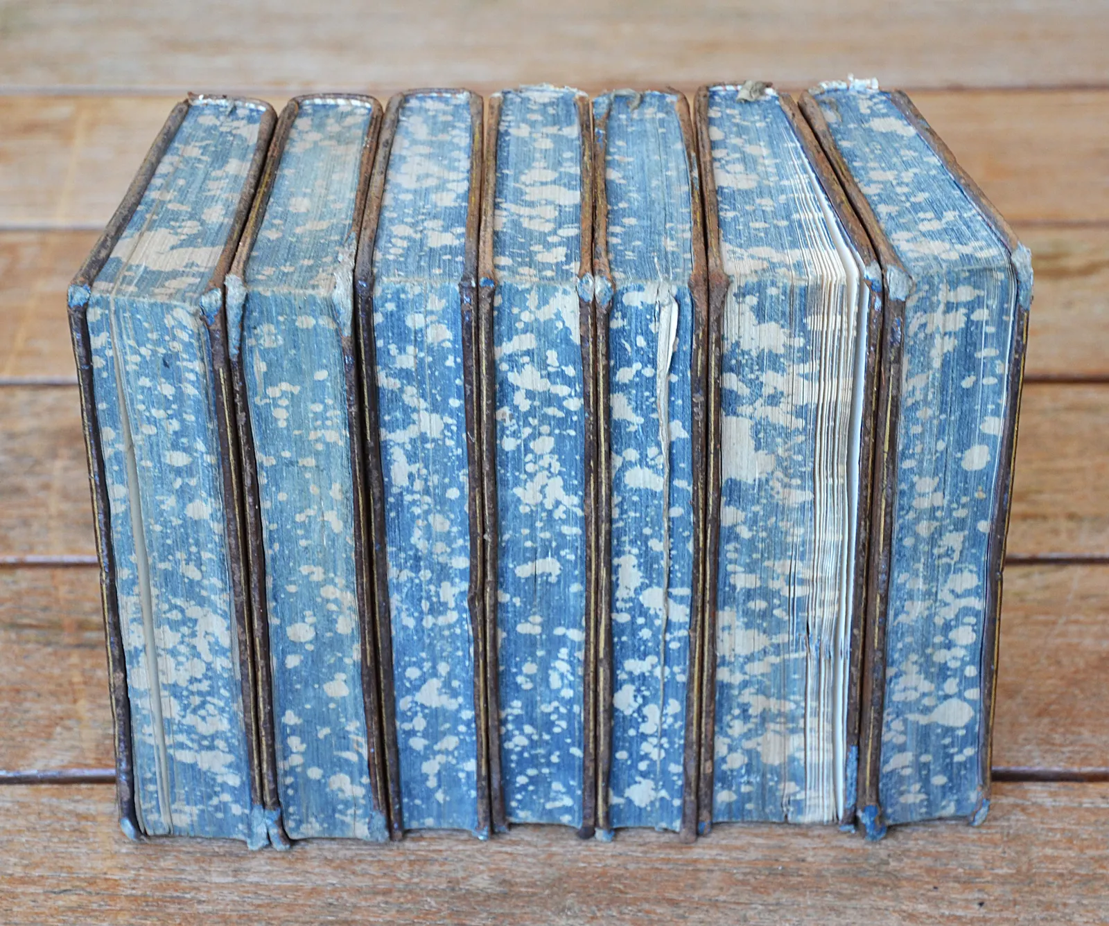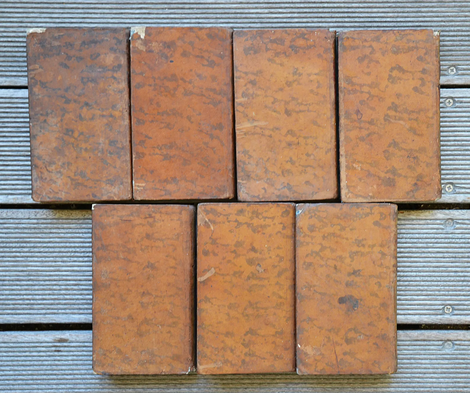 Ensemble de cinq volumes in-8 (13 x 19,7 cm.) de (2ff.) – 394 pp. / (2ff.) – 340 pp. / (2ff.) – 358 pp. – (1f.) + (2ff.) – 509 pp. / (2ff.) – 458 pp. – (1f.) ; veau fauve moucheté, filet à froid sur les plats, dos à nerfs ornés, roulette à froid sur les coupes, tranches jaunes (reliure de l’époque).