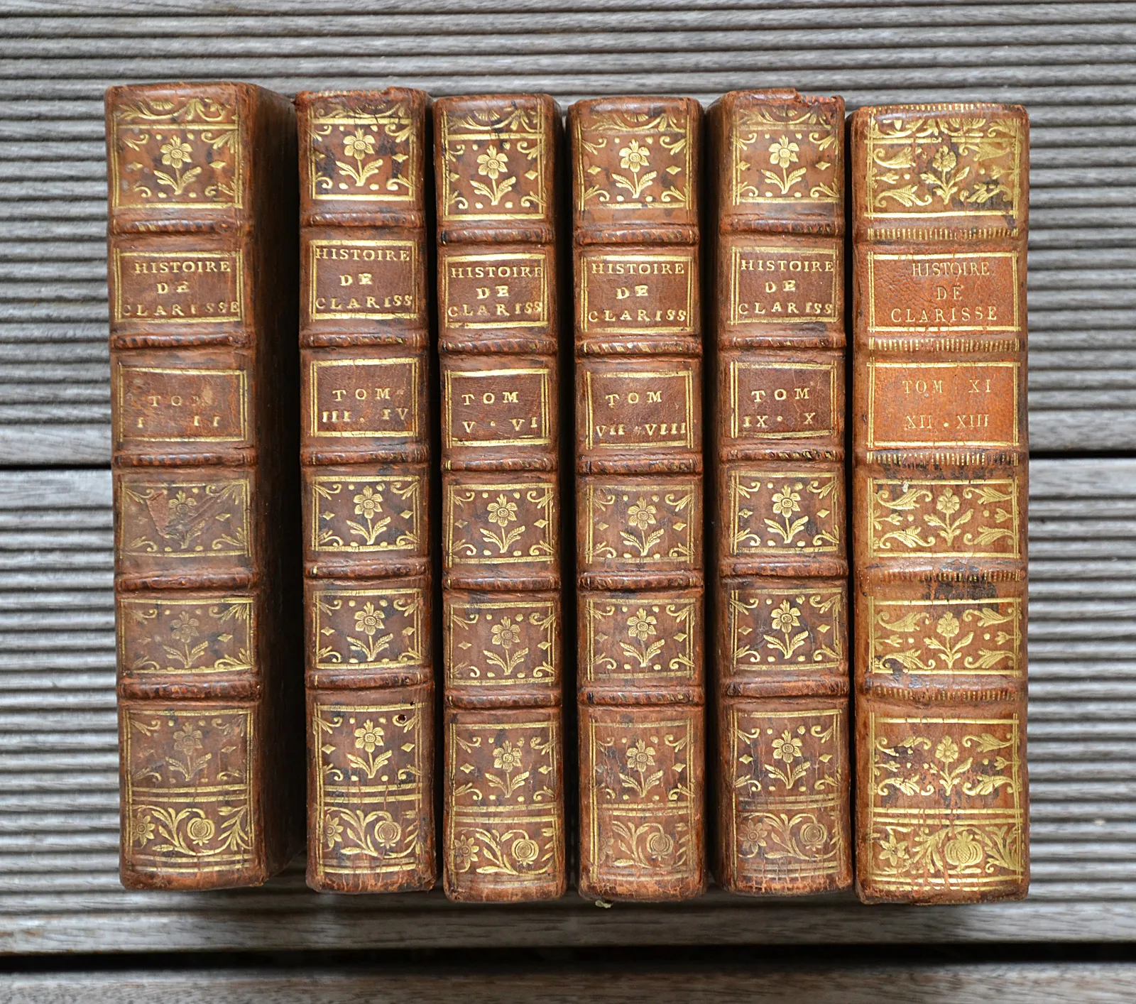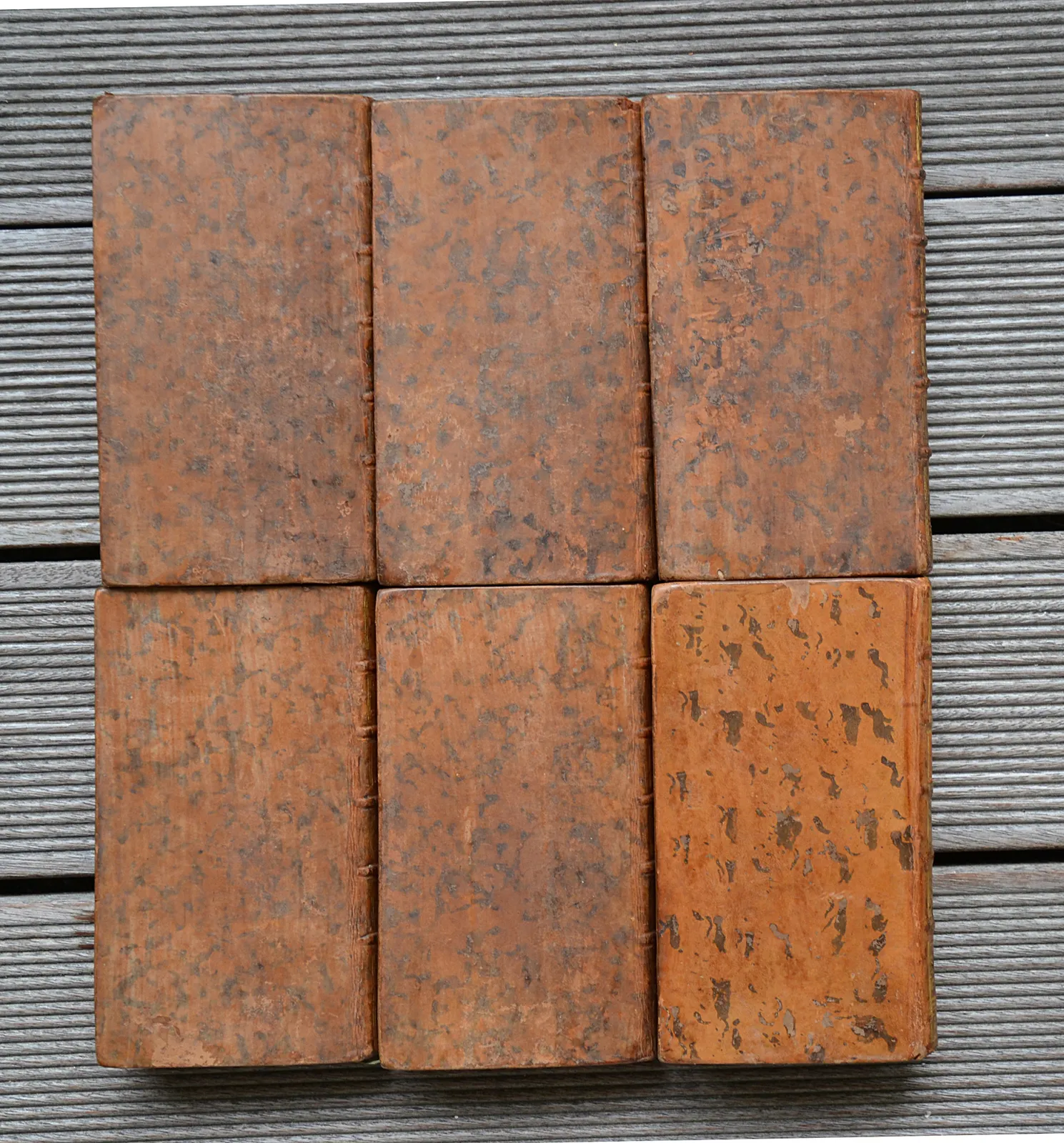 13 tomes en six volumes in-12 (10 x 17,5 cm.) de (4ff.) – XXXII – 244 pp. / (2ff.) – 222 pp. + (2ff.) – 216 pp. / (2ff.) – 207 pp. + (2ff.) – 188 pp. / (2ff.) – 184 pp. + (2ff.) – 232 pp. / (2ff.) – 232 pp. + (2ff.) – 223 pp. / (2ff.) – 220 pp. + (2ff.) – 300 pp. / (2ff.) – 192 pp. / (2ff.) – 216 pp. ; veau fauve marbré, dos à nerfs ornés, tranches rouges (reliures de l’époque, dos du sixième volume avec des fers légèrement différents).