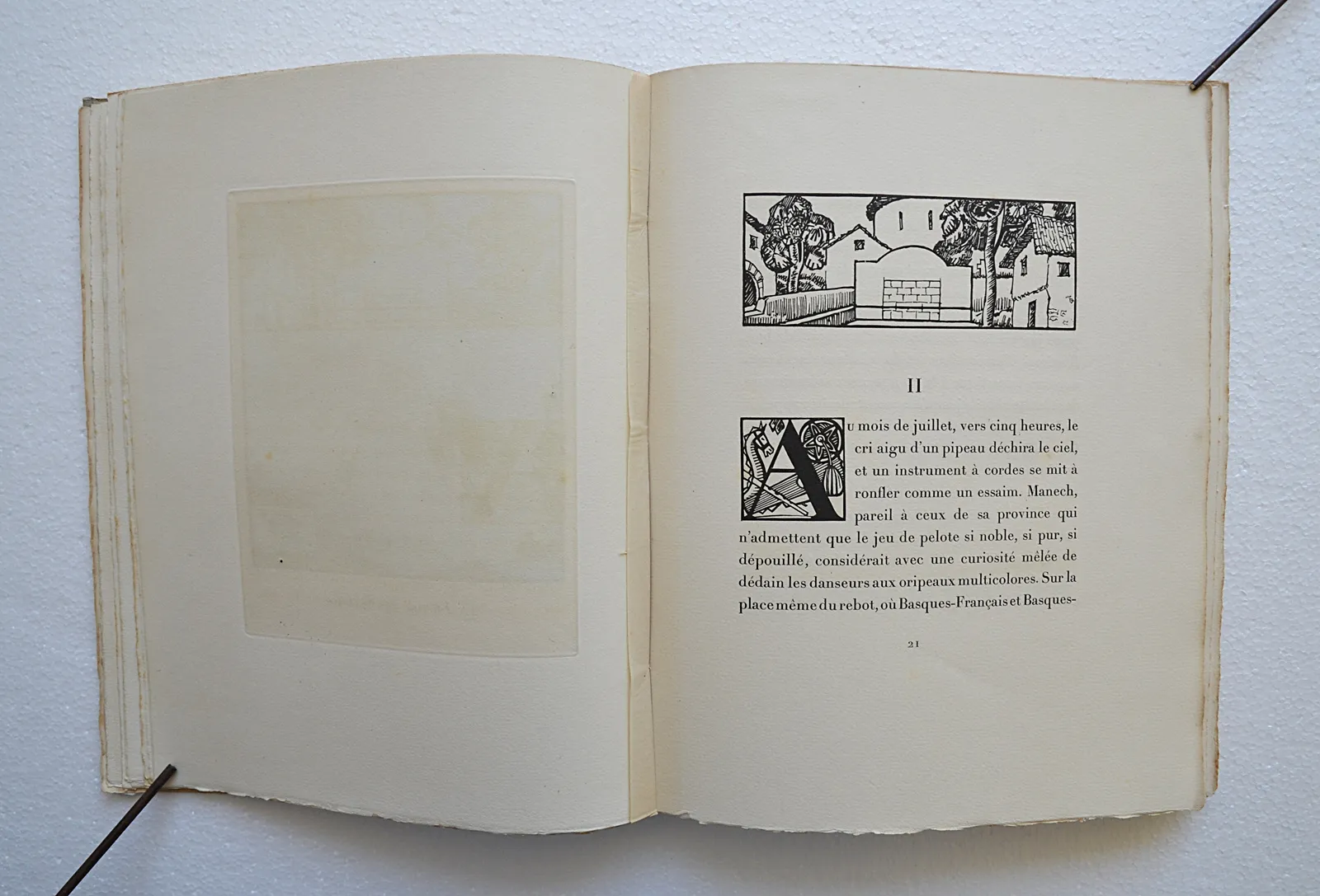 L’ouvrage est illustré de huit eaux-fortes en couleurs, protégées par des serpentes, de 7 en-têtes, de 7 lettrines et d’un cul-de-lampe, dessinés par Ramiro Arrue, gravés par A. Lambert.