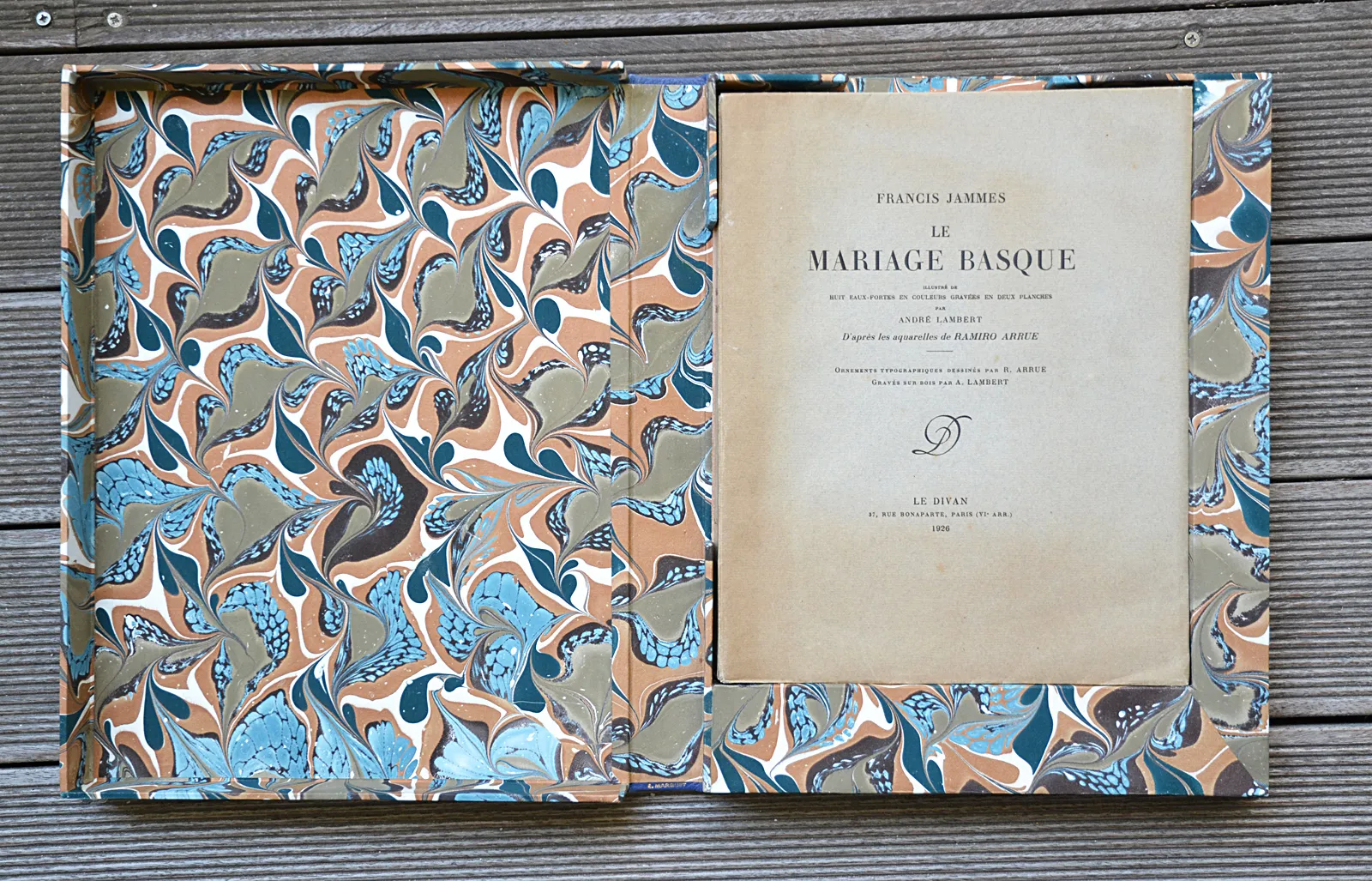 Illustré de huit eaux-fortes en couleurs gravées en deux planches par André Lambert, d’après les aquarelles de Ramiro Arrue.