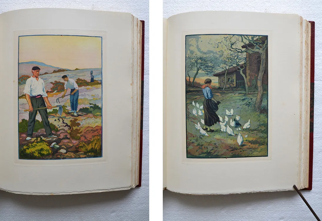 Bel exemplaire, illustré de 34 eaux-fortes en couleurs de Raoul Serres, dont 17 hors-texte protégés par des serpentes.