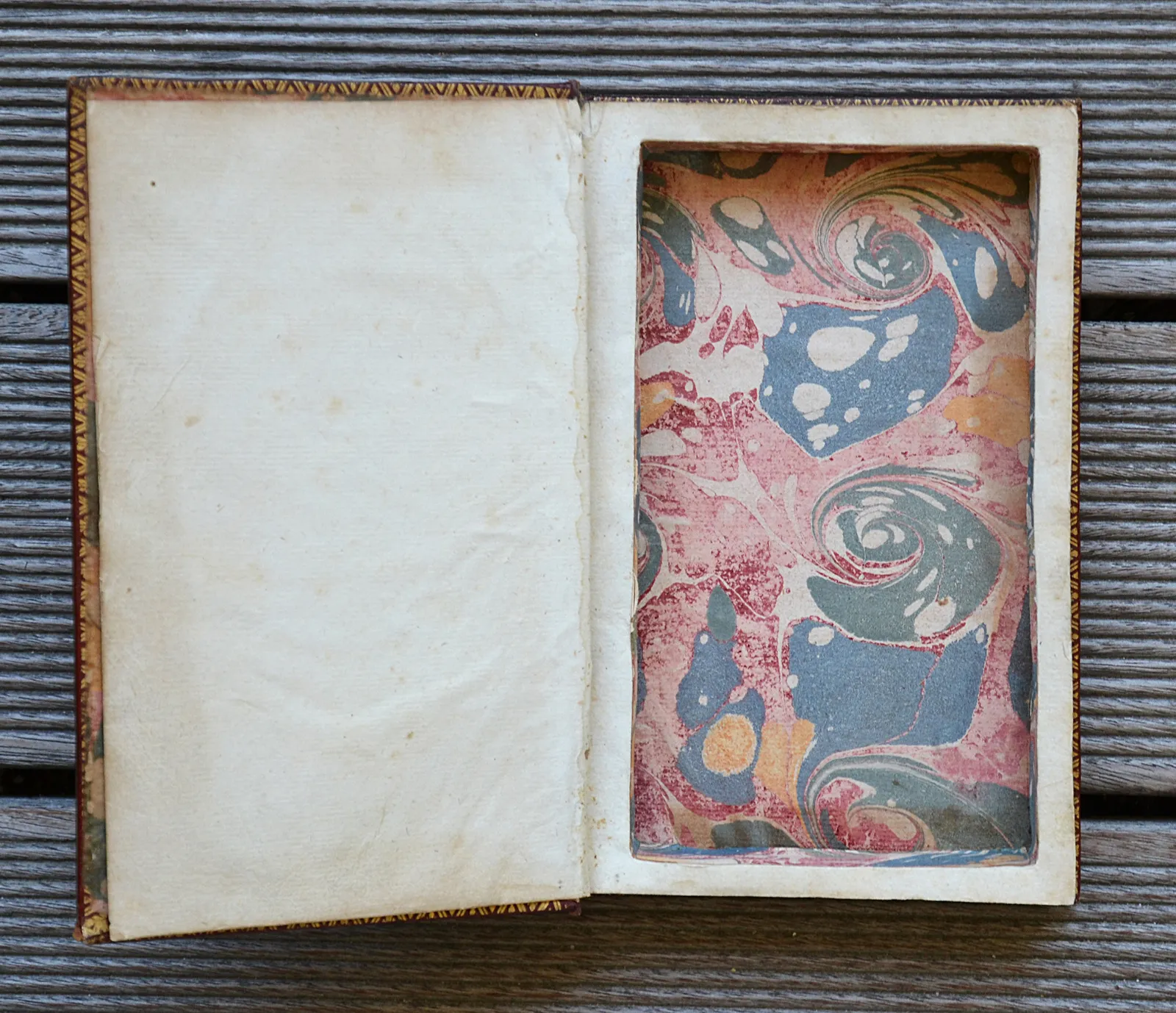 Un volume in-8 (13 x 20 cm.), maroquin rouge, armoiries dorées au centre des plats dans un encadrement de trois filets dorés, dos lisse orné, filet doré sur les coupes, roulette dorée à l’intérieur, tranches dorées (reliure du XVIII° siècle).