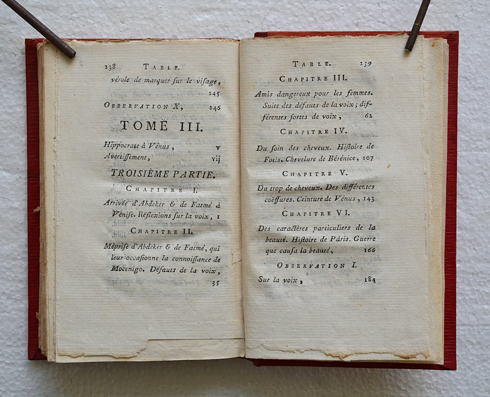 « L’ouvrage que l’on donne ici au public est la traduction d’un manuscrit arabe que Diamantes Ulasto, médecin de l’ambassadeur Turc, apporta à Paris en 1742 (…) L’on doit regarder son livre comme un traité complexe sur la beauté. En effet, tout ce qui peut la détruire ou la conserver, l’augmenter ou la diminuer se trouvera développé dans tout son jour. Causes physiques, causes morales, rien n’est omis ; l’auteur pénètre jusques dans le sanctuaire des plaisirs, mais sans effaroucher les grâces qui en gardent l’entrée (…) (Préface).