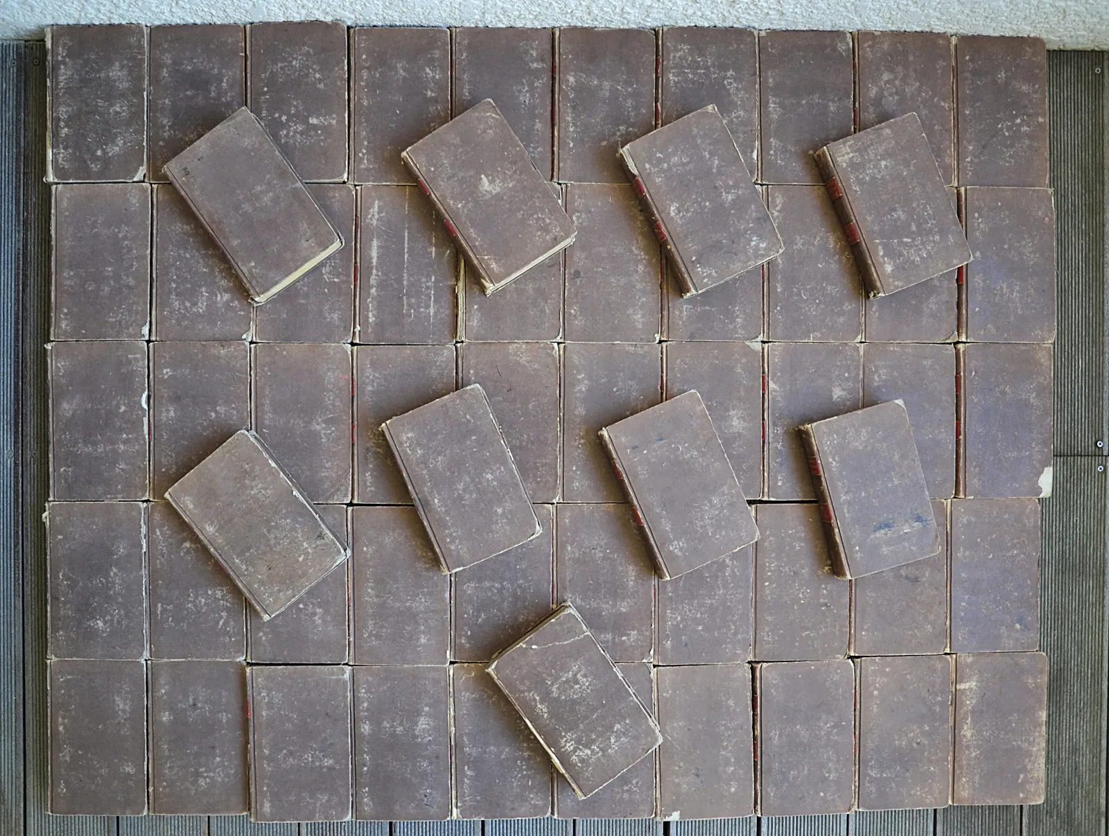 59 volumes in-8 (13 x 20 cm.), cartonnage beige à la Bradel, pièces de titre et de tomaison en veau rouge (reliure de l’époque).