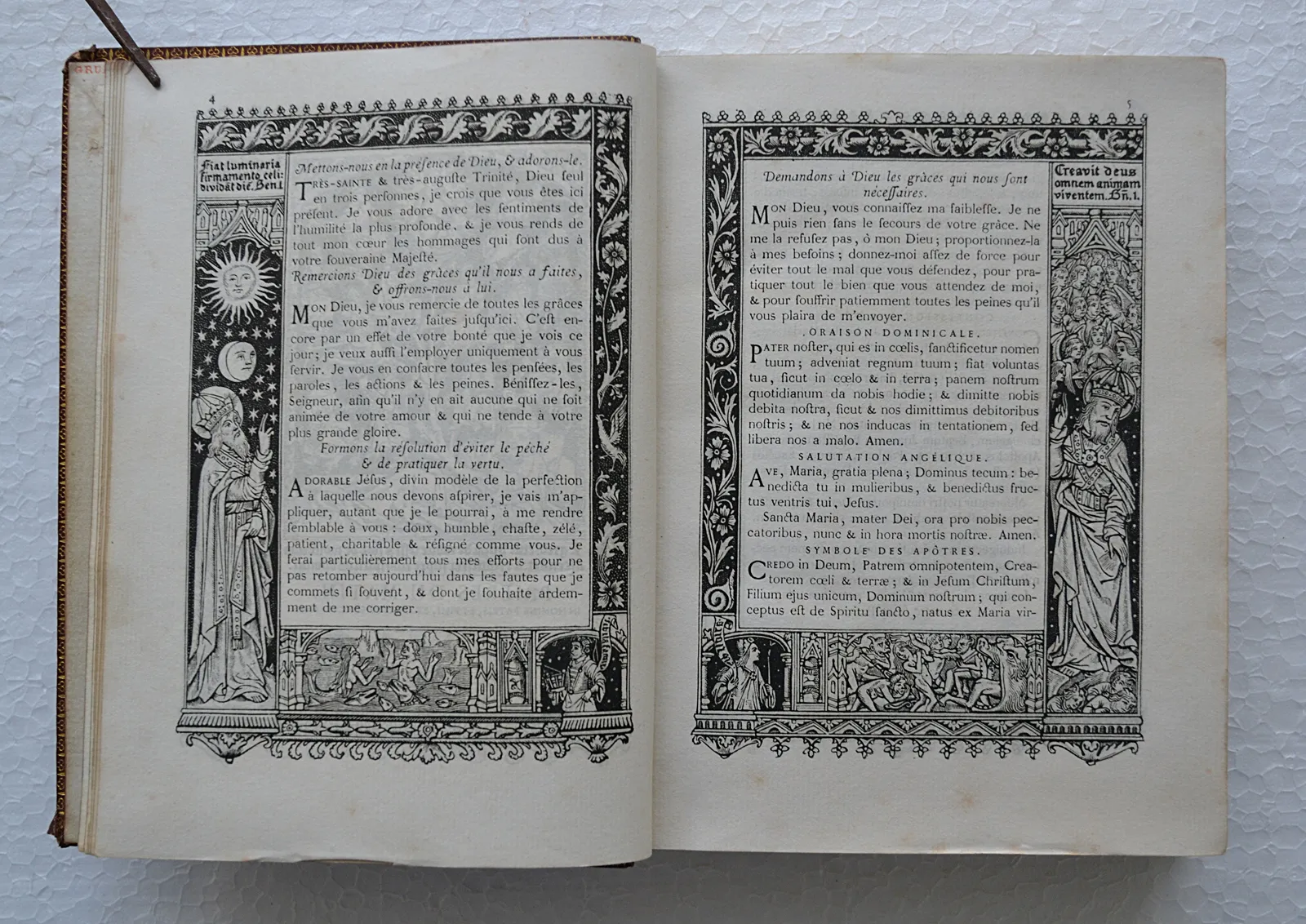 Très bel exemplaire, illustré de cinq chromolithographies, de 10 gravures dans le texte, et avec le texte encadré de dessins représentant des scènes bibliques.