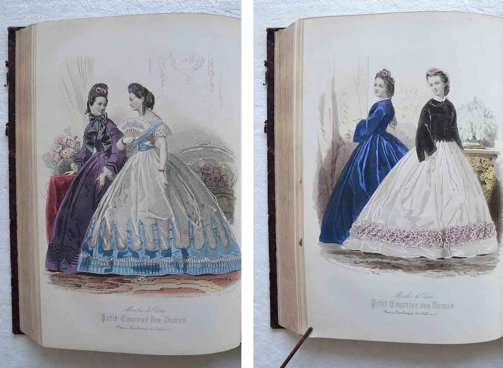 Très rare ensemble, comprenant le Journal des Demoiselles de l’année 1863 avec, relié à la suite, les douze fascicules de l’Écho du Petit Courrier des Dames.