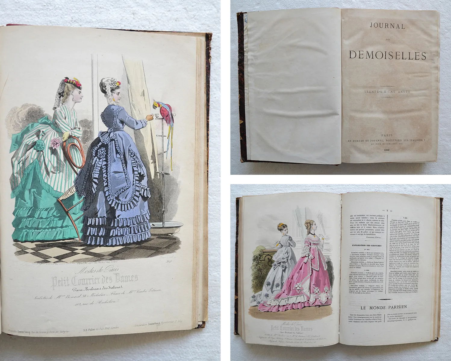 Très rare ensemble, comprenant le Journal des Demoiselles de l’année 1868 avec, relié à la suite, les douze fascicules de l’Écho du Petit Courrier des Dames.