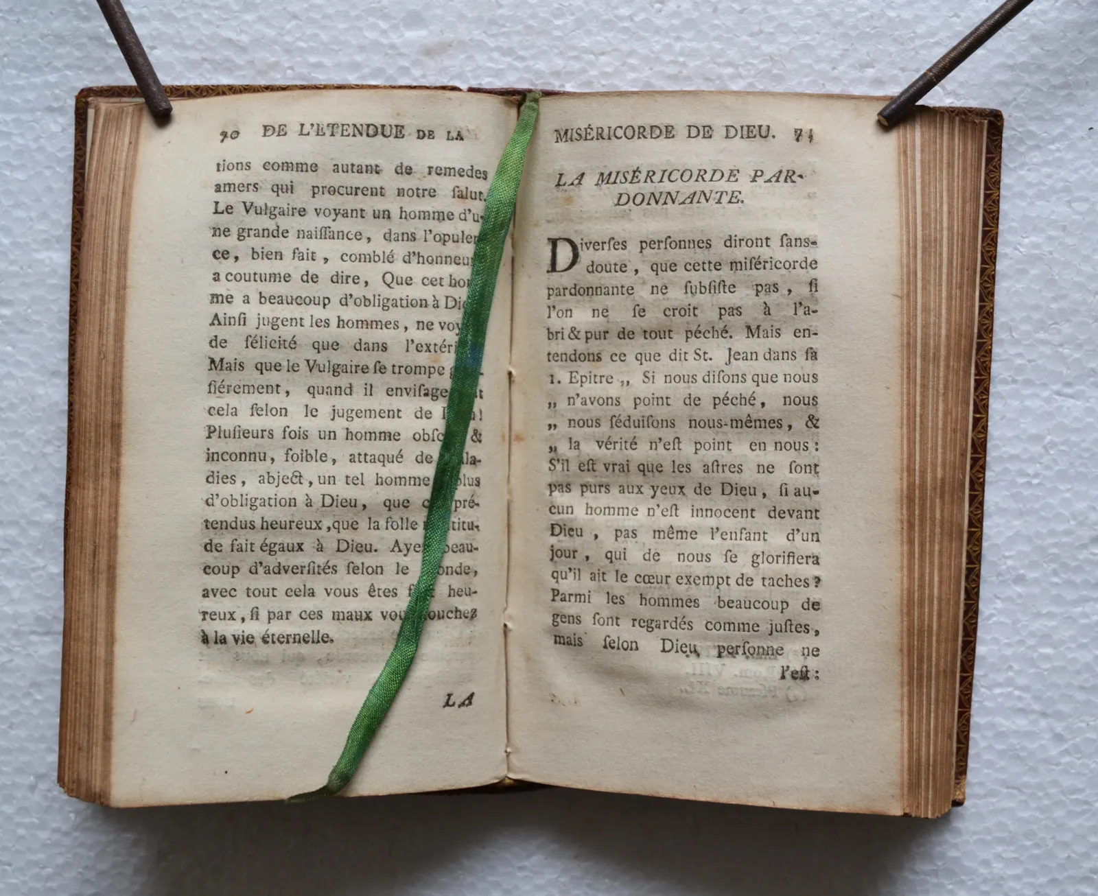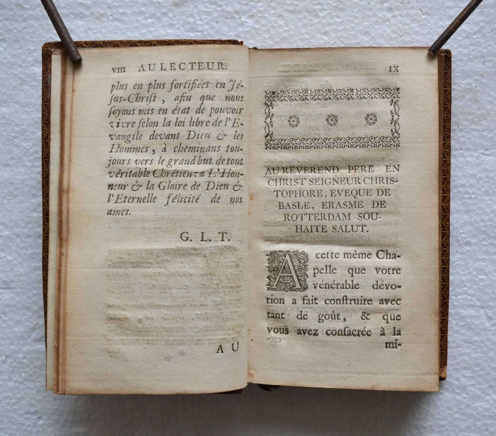 1763, in-12, maroquin rouge, taches sombres sur les plats, 220 pages.