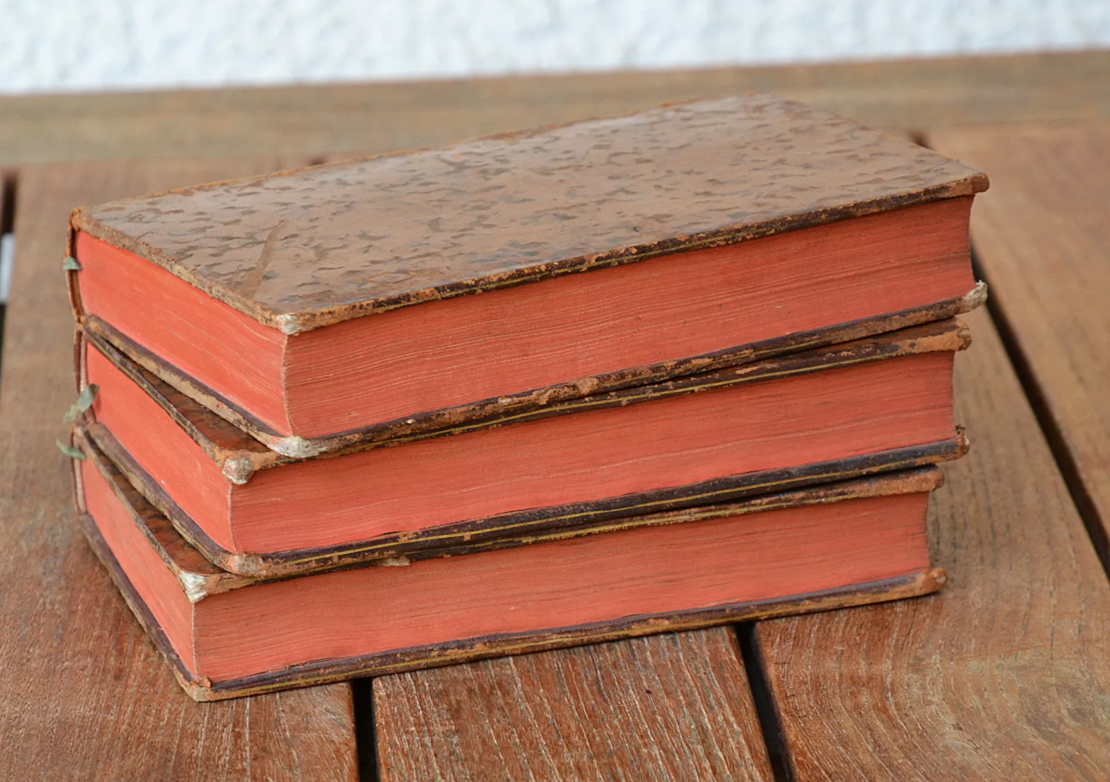 Accrocs sur les coiffes supérieures ; deux charnières & trois mors fendillés ; rousseurs éparses.
