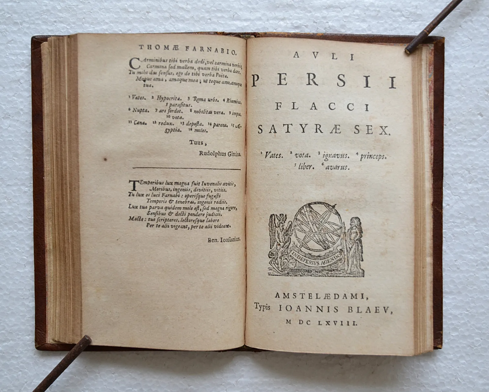 Rare édition hollandaise du dix-septième siècle, imprimée par Joan Blaeu (1596-1673), avec des annotations de Thomas Farnaby (1547-1647), grammairien et éditeur de classiques latins.