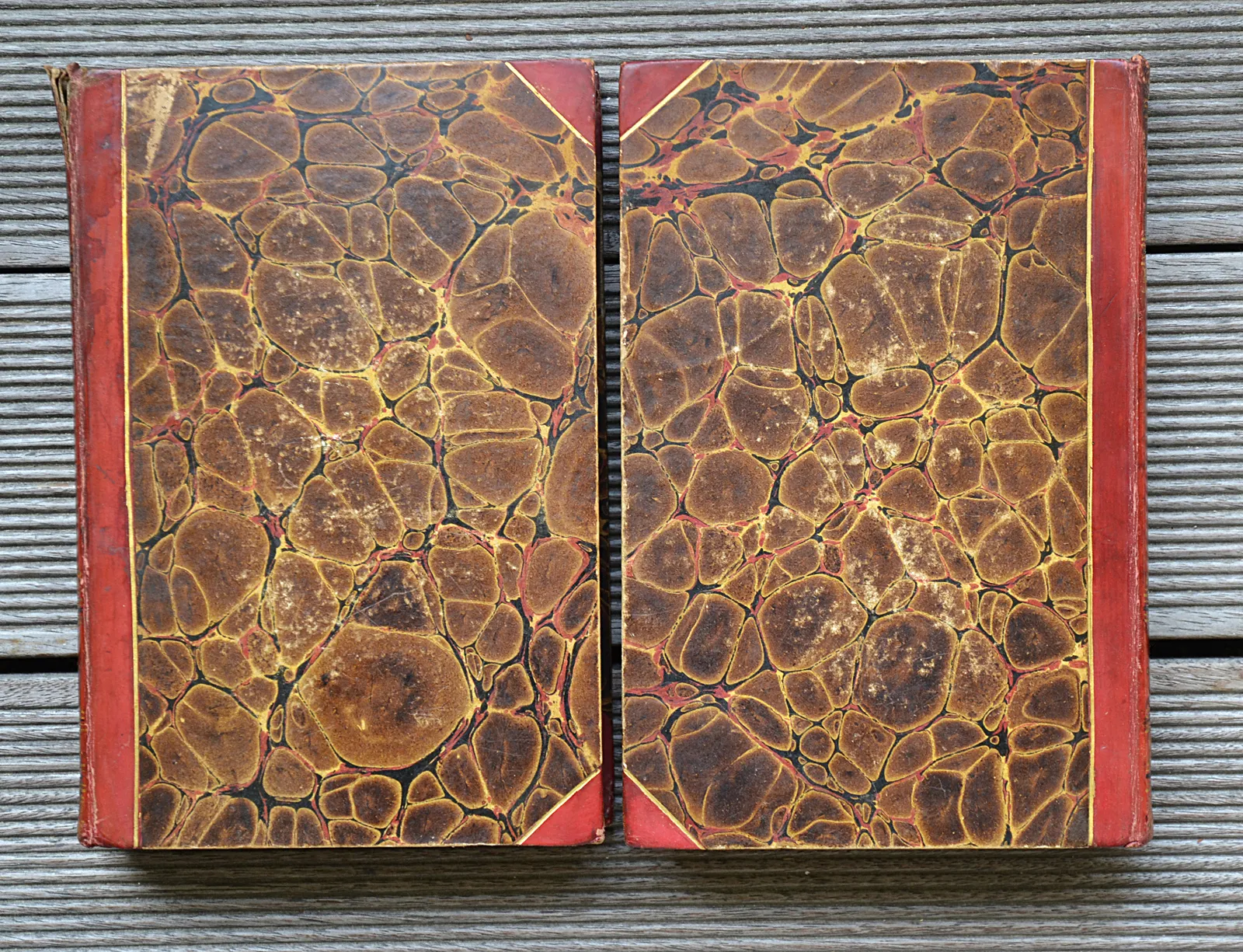 Texte recherché, rare avec les deux volumes en reliures romantiques uniformes.