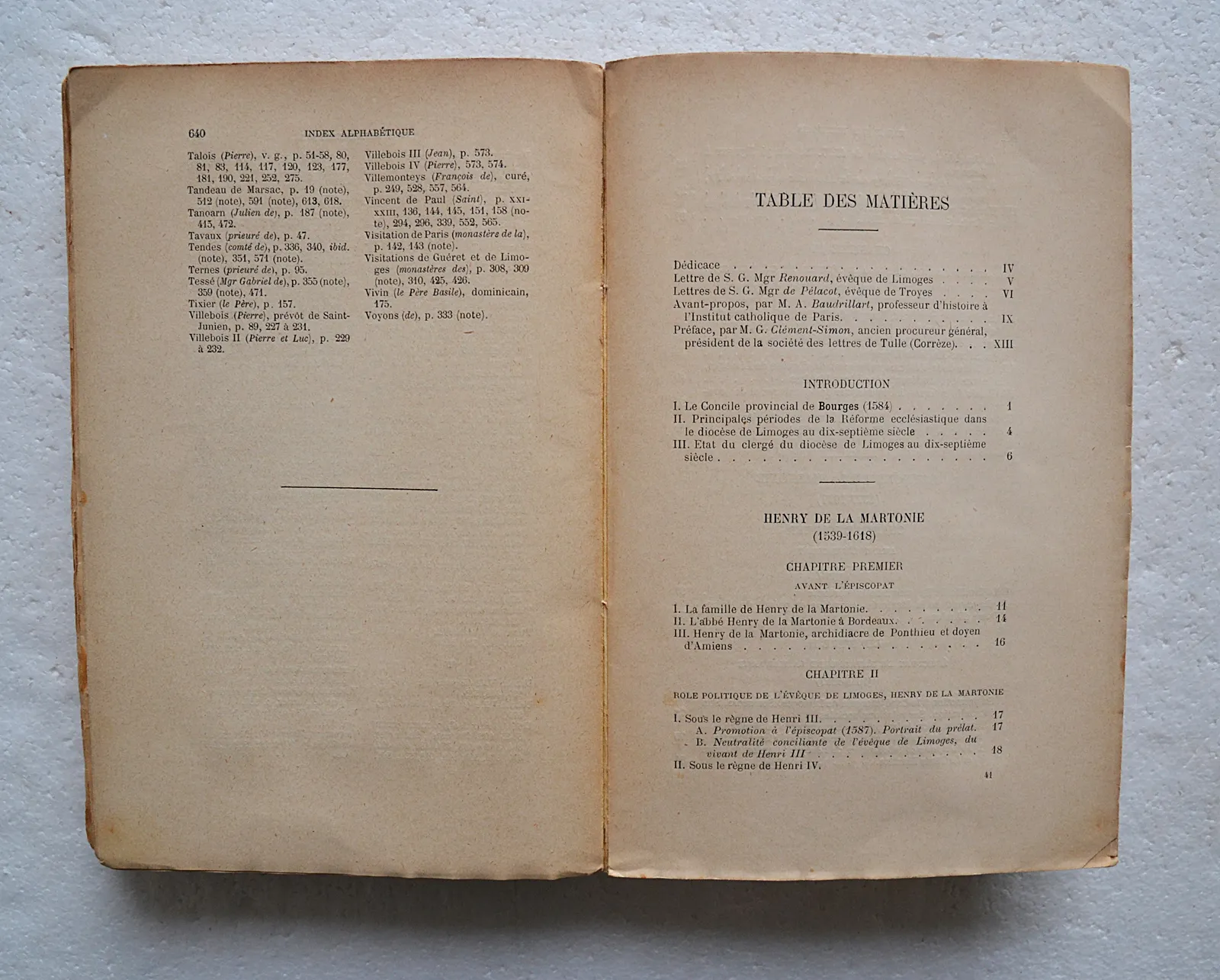 Bon exemplaire de cet ouvrage rare, illustré de six portraits hors-texte des évêques réformateurs de Limoges.