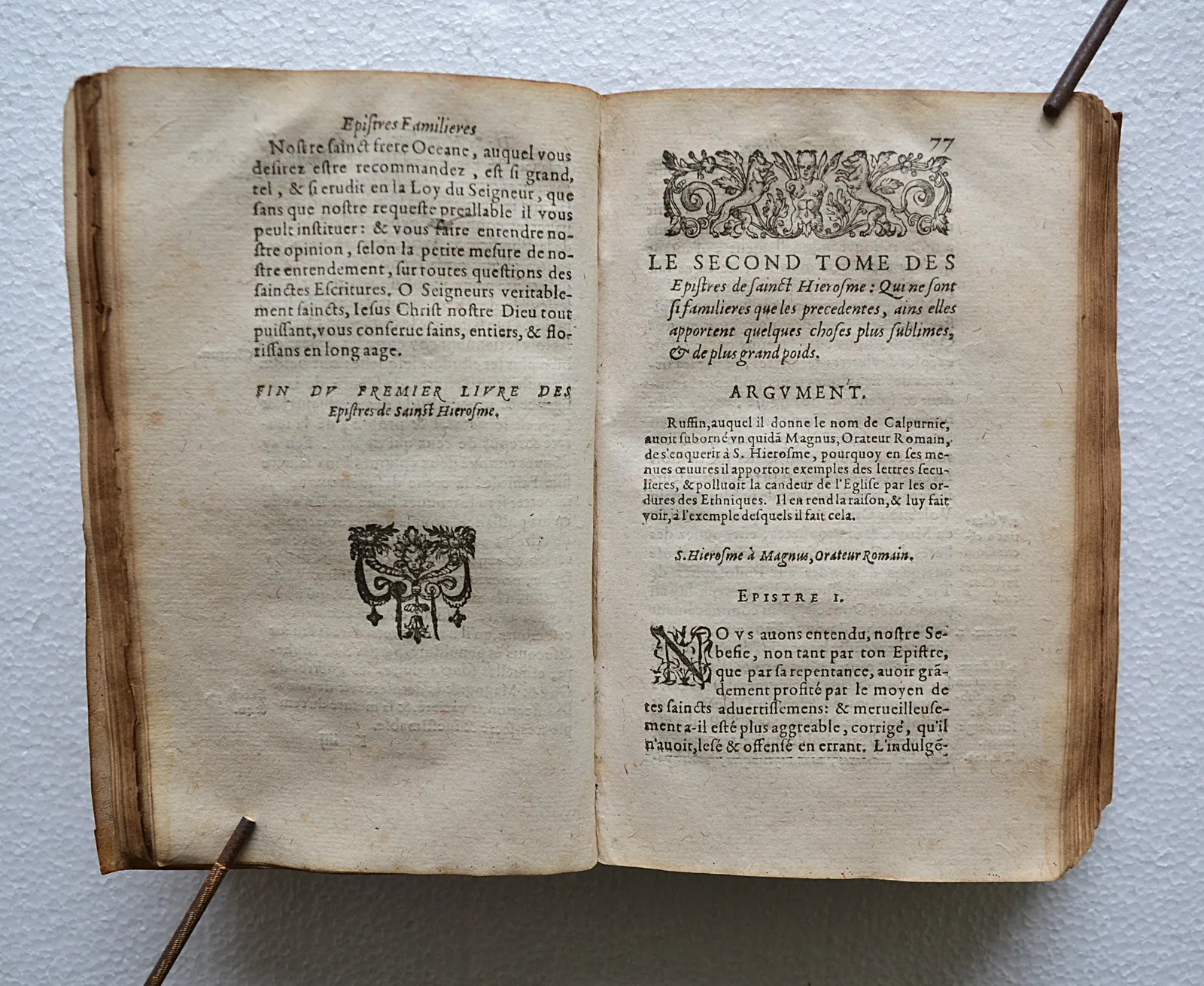 Troisième édition de la traduction des Épistres de Saint Jérôme par Jean de Lavardin, abbé de l’Étoile, un monastère de l’ordre des Prémontrés dans le Loir-et-Cher.