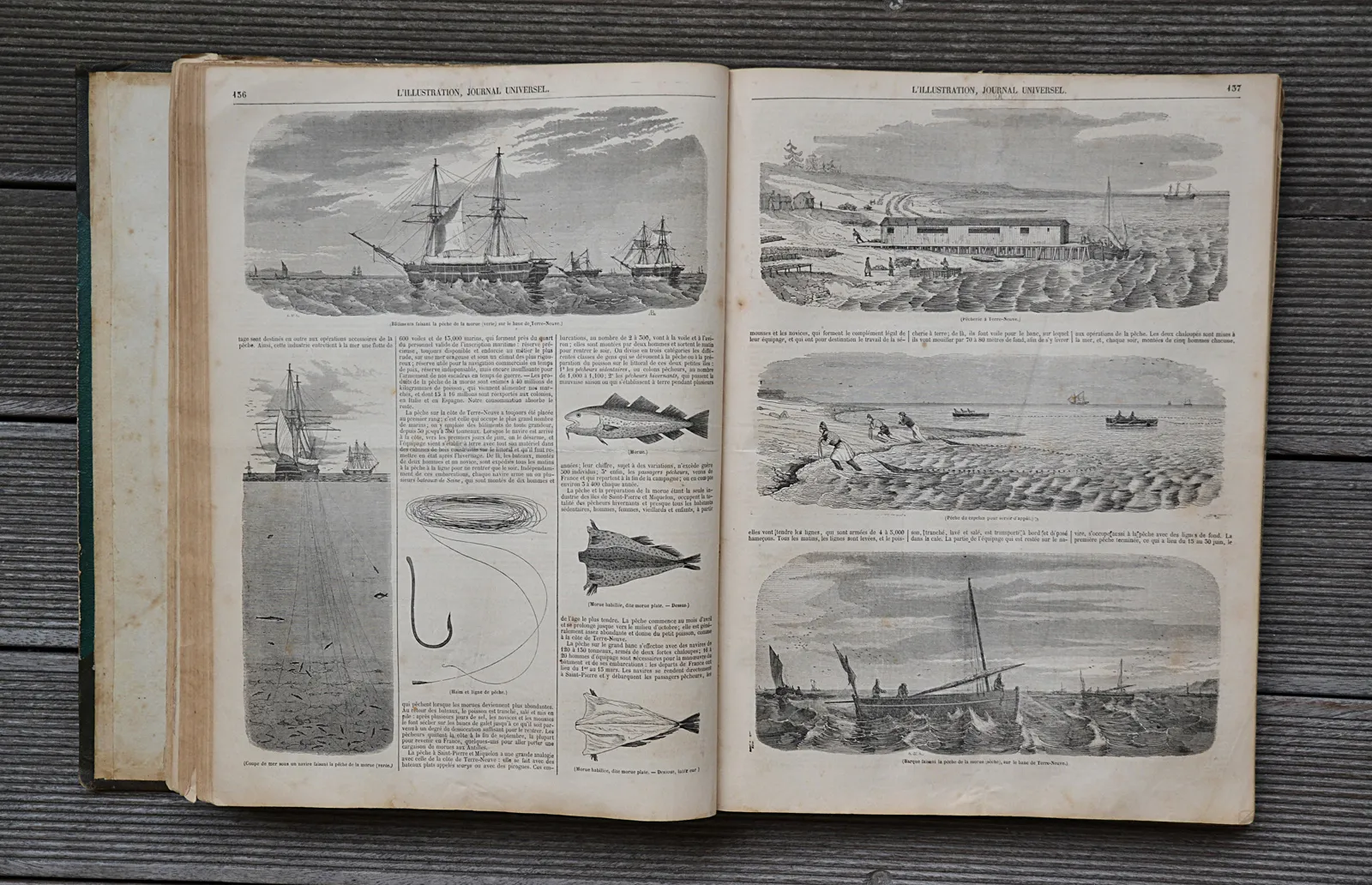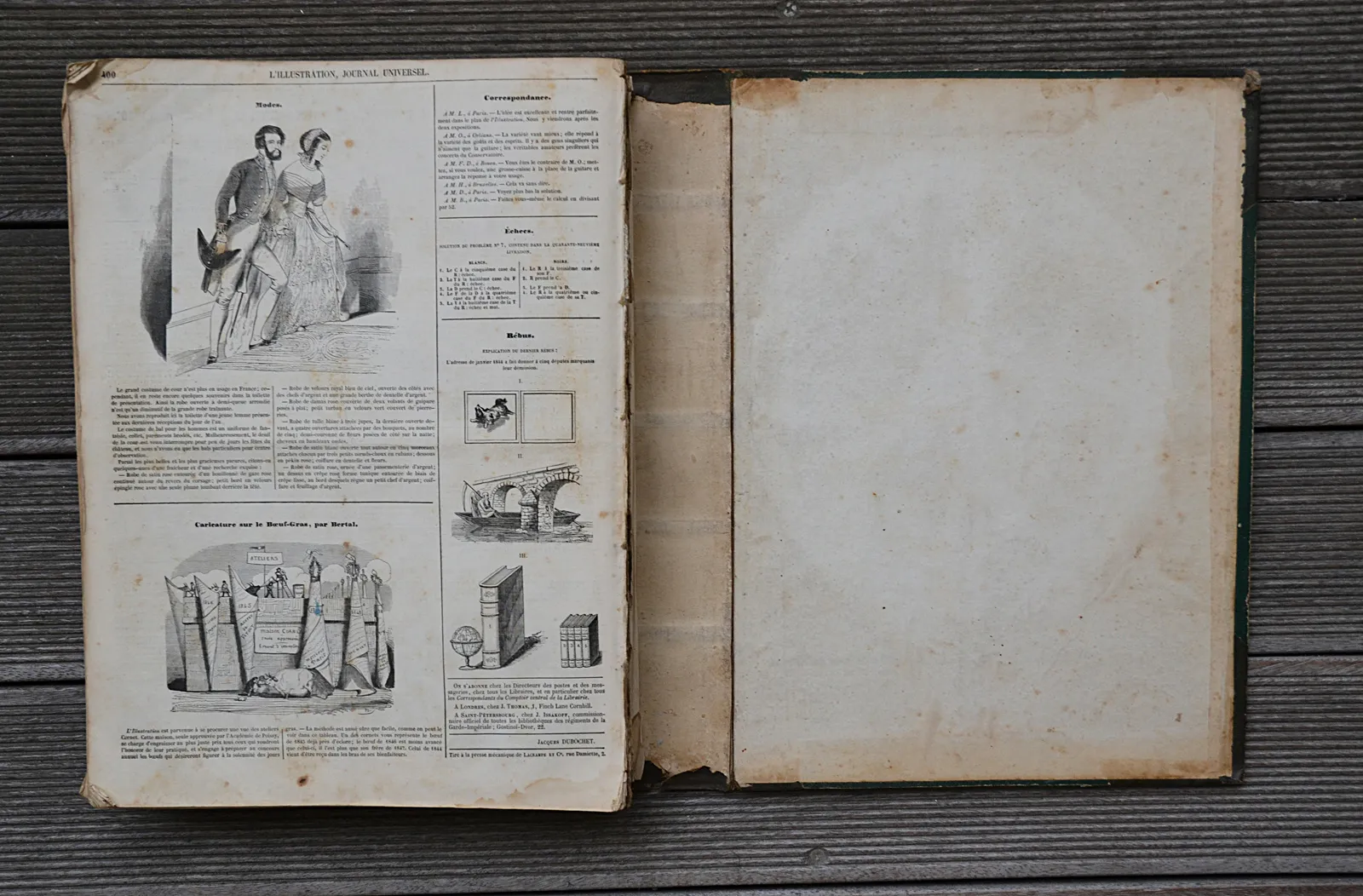 49 numéros reliés en un volume in-folio (27,3 x 37 cm.) de : page 33 à la page 416 + page 1 à la page 400 ; demi-percaline verte de l’époque, filets dorés sur les plats, dos à faux-nerfs orné.