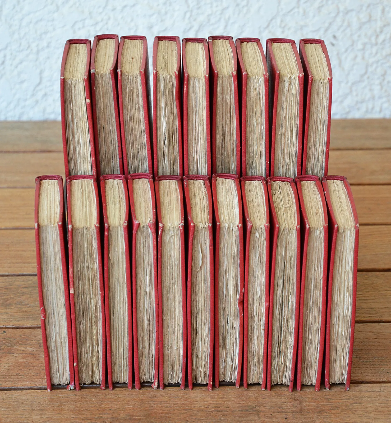 Vingt volumes in-18 (9,5 x 14,8 cm.), demi-maroquin à grain long de l’époque, dos lisses ornés (quelques épidermures sur les dos avec petites pertes de dorure par endroits ; trace de mouillure brune dans les marges supérieures du T18, cf. photo ; titre du T1 absent ; rousseurs éparses).