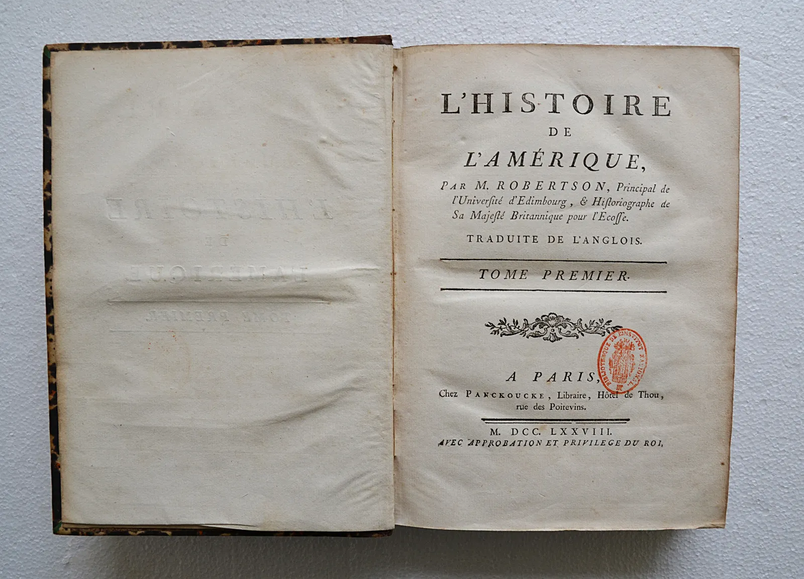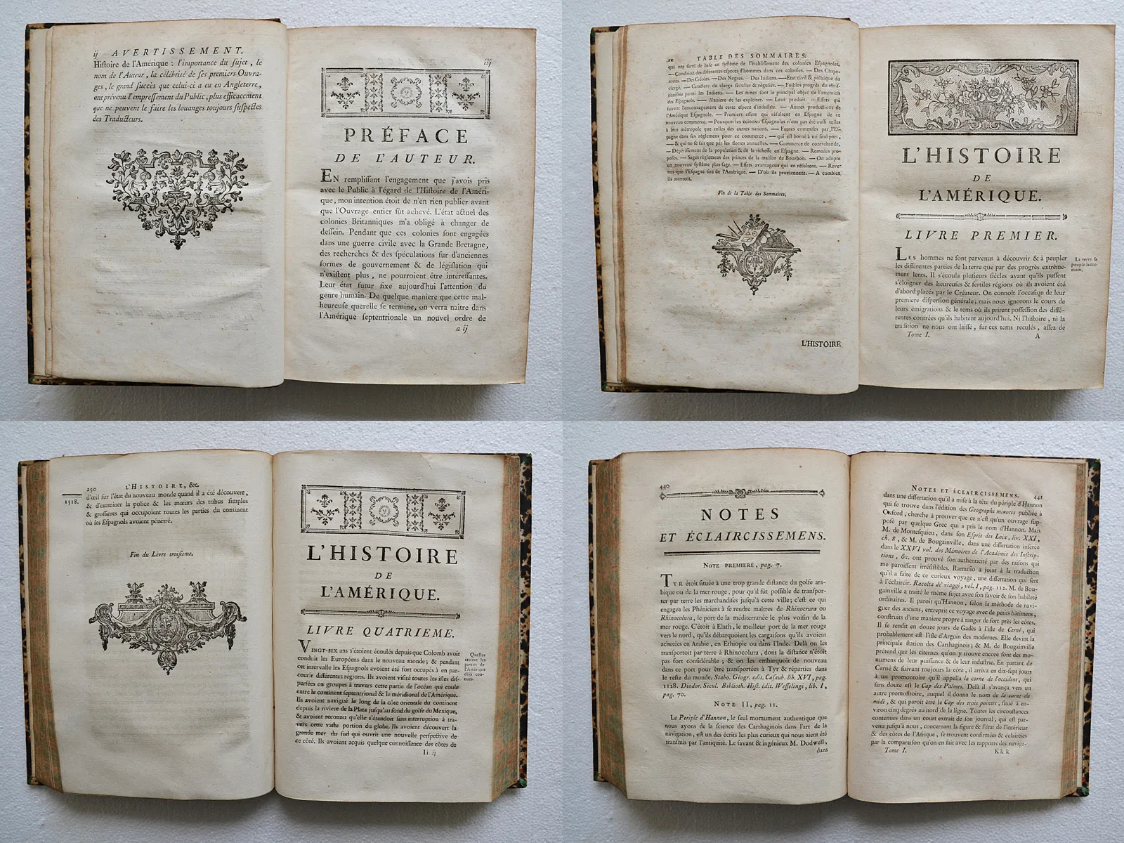 Édition originale de la traduction de Suard et Jansen de cette excellente histoire de l’Amérique, illustrée de 5 planches gravées repliées in fine, dont 4 grandes cartes et une figure de la Table chronologique des Mexicains. Publiée un an après l’édition anglaise, cette traduction connut une autre édition en 1778, assez courante, au format in-12.