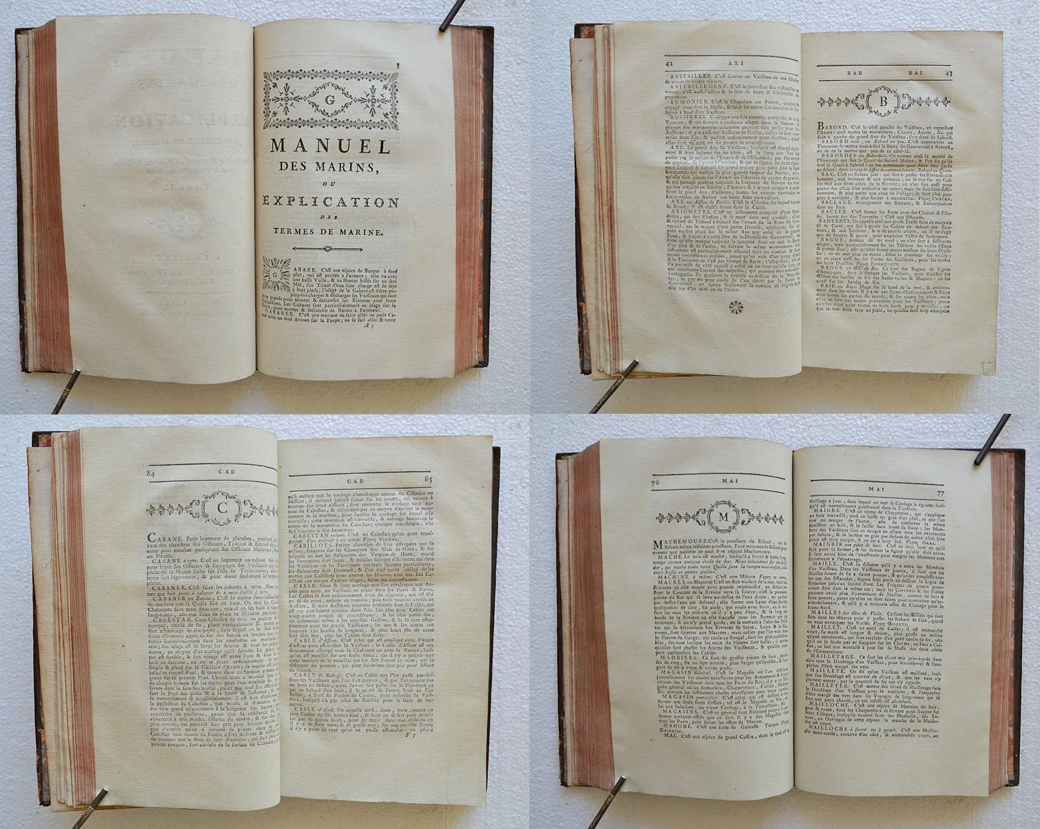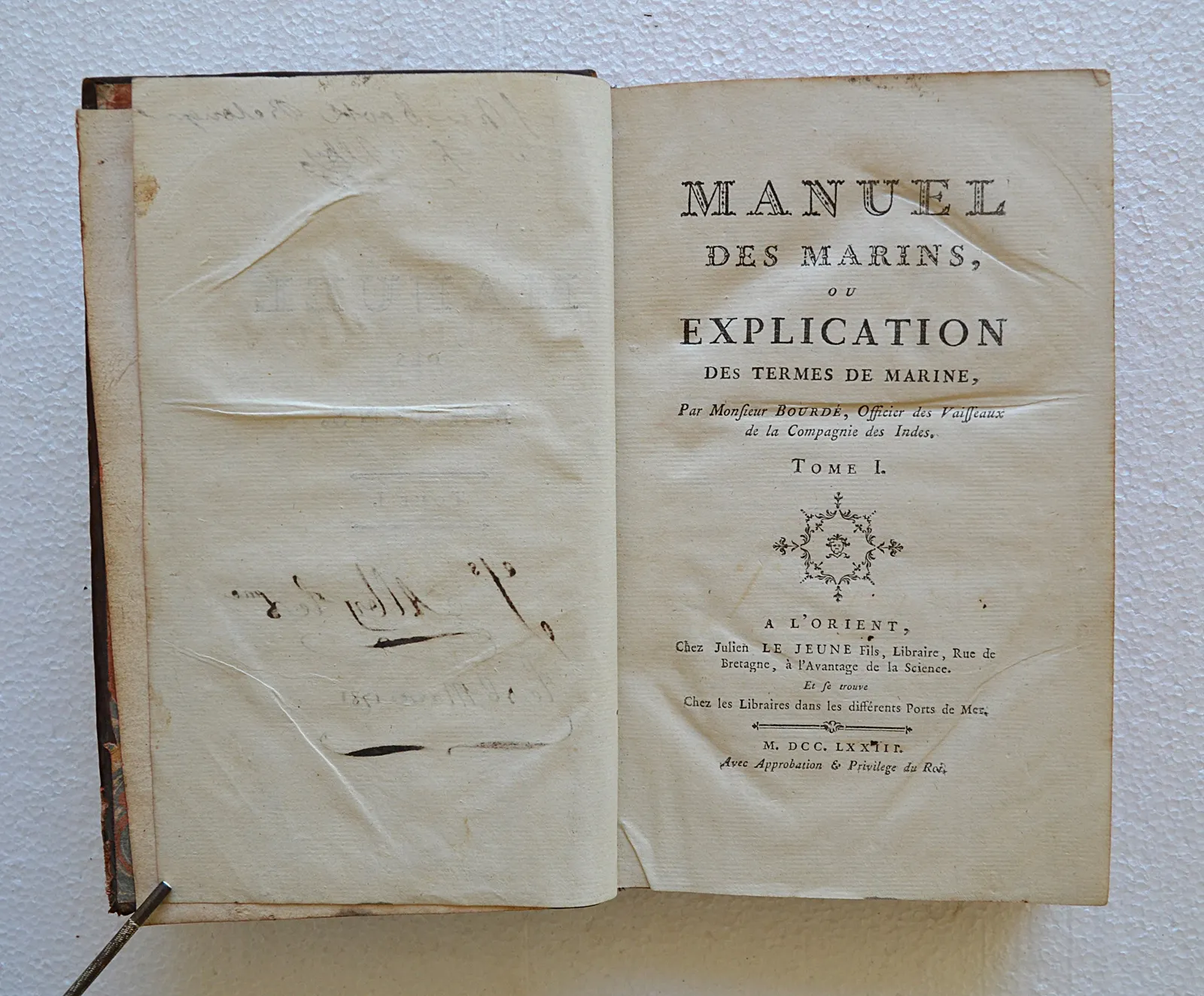 Descendant d’une lignée d’officiers de marine, Jacques Bourdé de Villehuet (1732-1789) entre au service de la compagnie des Indes. En 1765, il accède à la renommée en publiant Le manœuvrier, ou essai sur la théorie et la pratique des mouvements du navire. Cet ouvrage connaîtra cinq éditions jusqu’en 1832 et sera traduit en anglais. Publié l’année suivante, son Mémoire sur l’arrimage des vaisseaux se voit primé par l’Académie. Fort de ces succès, il peut alors travailler pleinement à la rédaction d’une encyclopédie navale qui serait utile non seulement aux marins et aux « gens de mer », mais également aux négociants, aux serviteurs de l’État et aux décideurs politiques. Le Manuel des marins, ou Dictionnaire des termes de marine est publié en 1773 à Lorient, siège de la Compagnie des Indes orientales. En véritable ethnologue et linguiste, l’auteur a réalisé un important travail de collecte dans les ports et les chantiers auprès des professionnels de la mer.